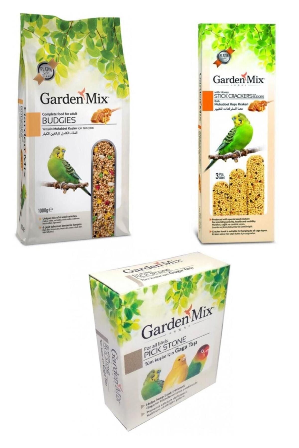 Gardenmix Budgie Care Kit 3-Piece Honey Bird Food 1 Kg - Beak Stone-Honey Bird Cracker