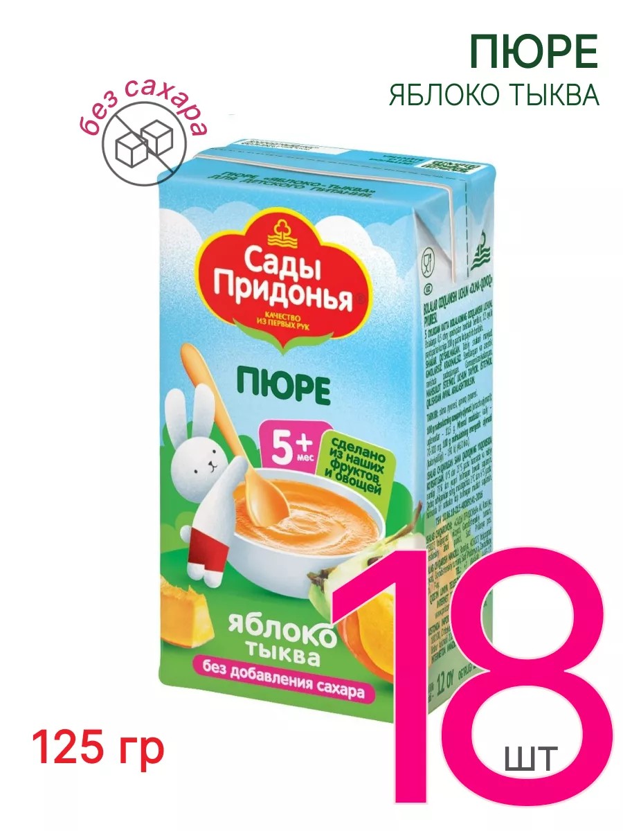 Детское пюре яблоко-тыква Сады Придонья рекомендуется для продолжения прикорма и знакомства малыша 5 + с новыми вкусами. Пюре сочетает пользу зелёных донских яблок и сладкой ароматной тыквы мускатных сортов. Сладкая тыква, входящая в состав пюре яблоко-тыква «Сады Придонья», прекрасно усваивается и очень хорошо переносится маленькими детьми (практически никогда не вызывает аллергических реакций). Кроме того, тыква - источник витаминов группы B, b-каротина и железа. Яблочно-тыквенное пюре содержит большое количество пищевых волокон и способствует хорошему пищеварению. Продукт особенно полезен для зрения и укрепления иммунитета ребенка. Для производства пюре мы используем яблоки и тыкву, выращенные в собственных хозяйствах компании «Сады Придонья». Пюре приготовлено без добавления сахара, соли, крахмала и воды. Рекомендуется давать детям старше 5 месяцев, начиная с 0,5 чайной ложки, увеличивая к 12 месяцам до 100 г в день.