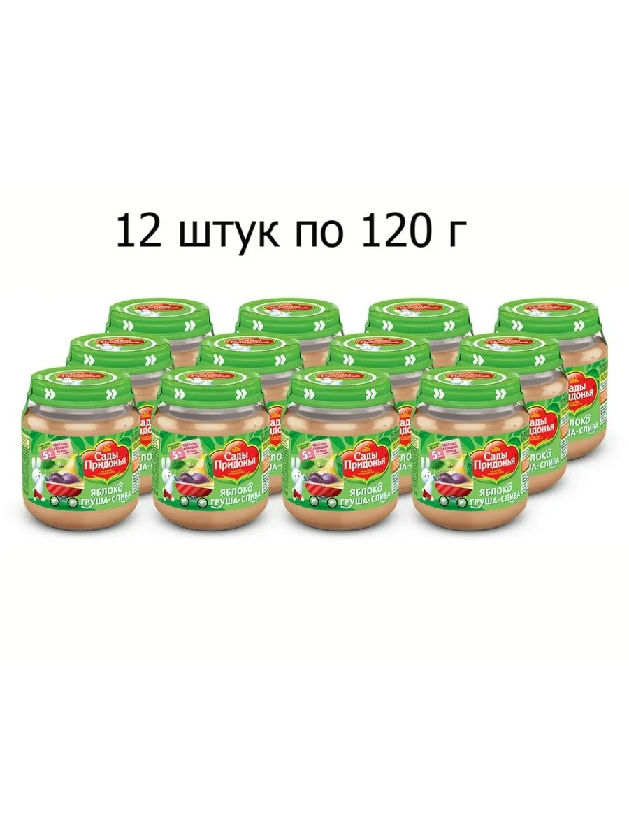 Сады Придонья Детское пюре яблоко-груша-слива 12 шт по 120г .