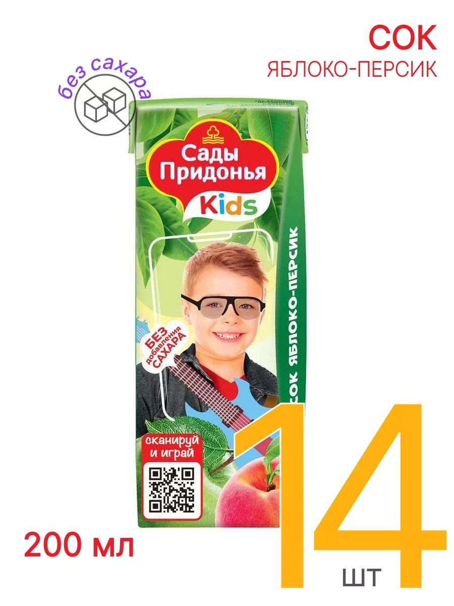 Сады Придонья Сок детский яблочно-персиковый без сахара 0,2 л, 14 шт
