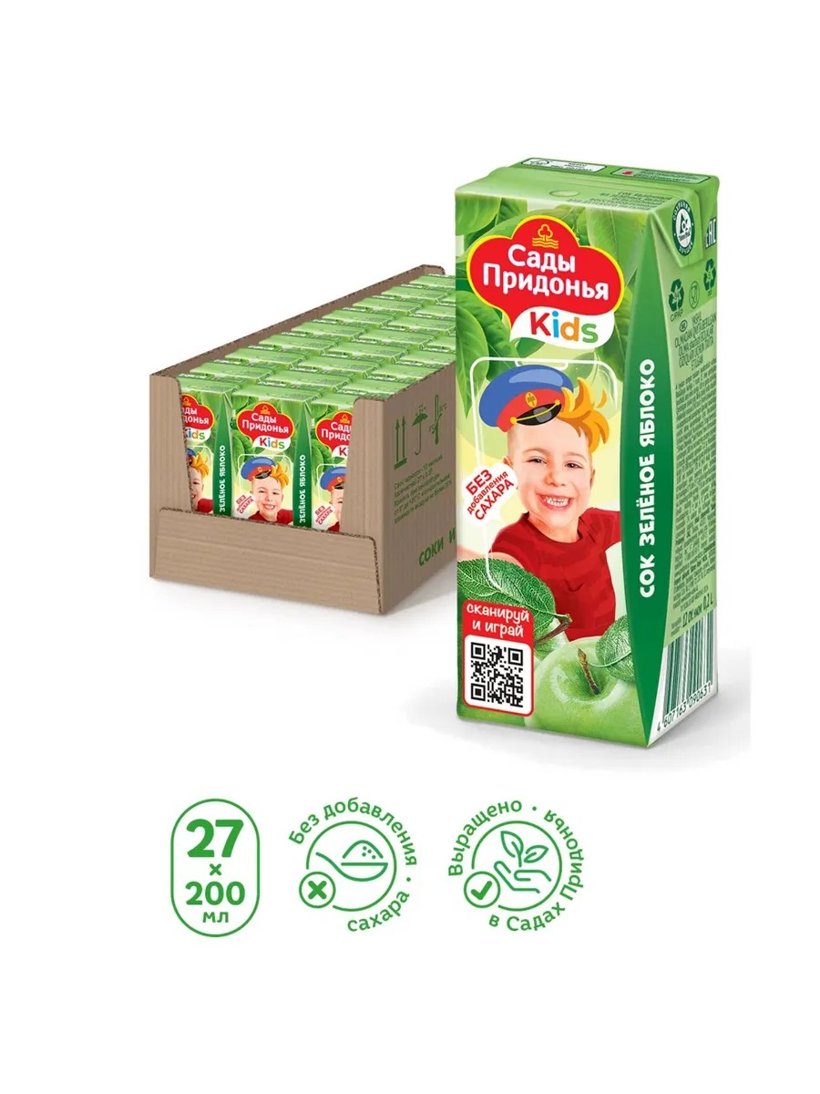 Сады Придонья сок зеленое яблоко 0.2 л 27 шт.