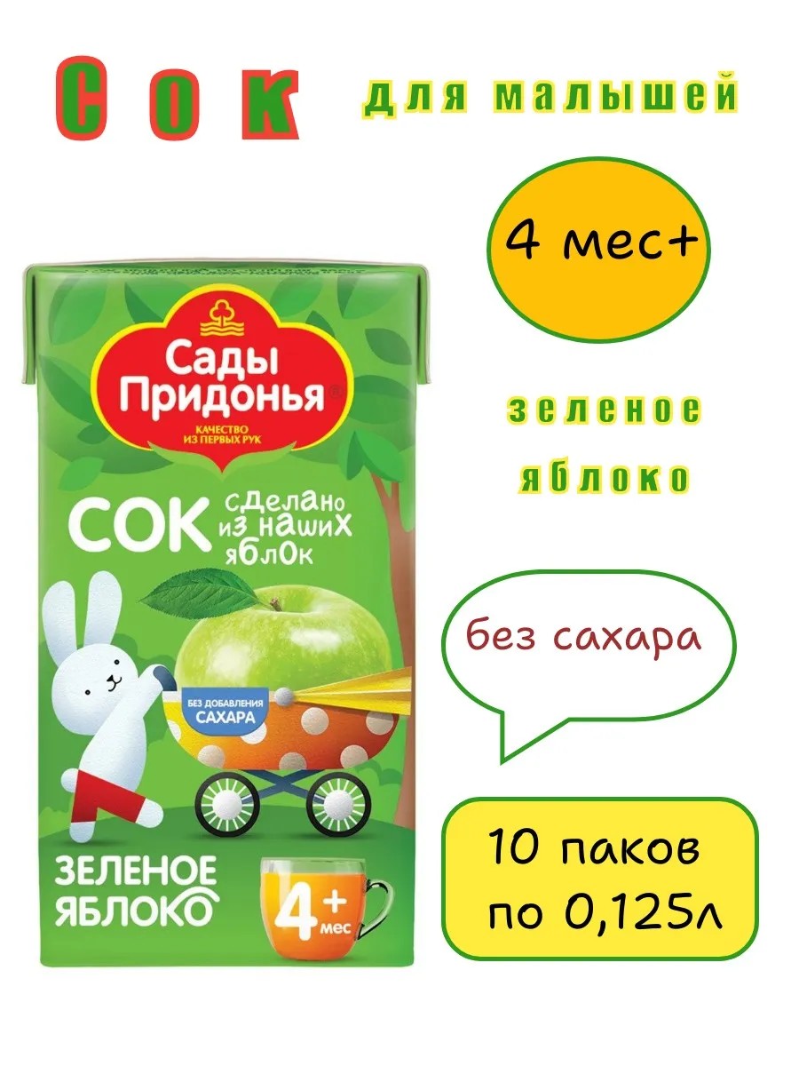 Сады Придонья Сок детский Зеленое яблоко, 10шт по 125мл