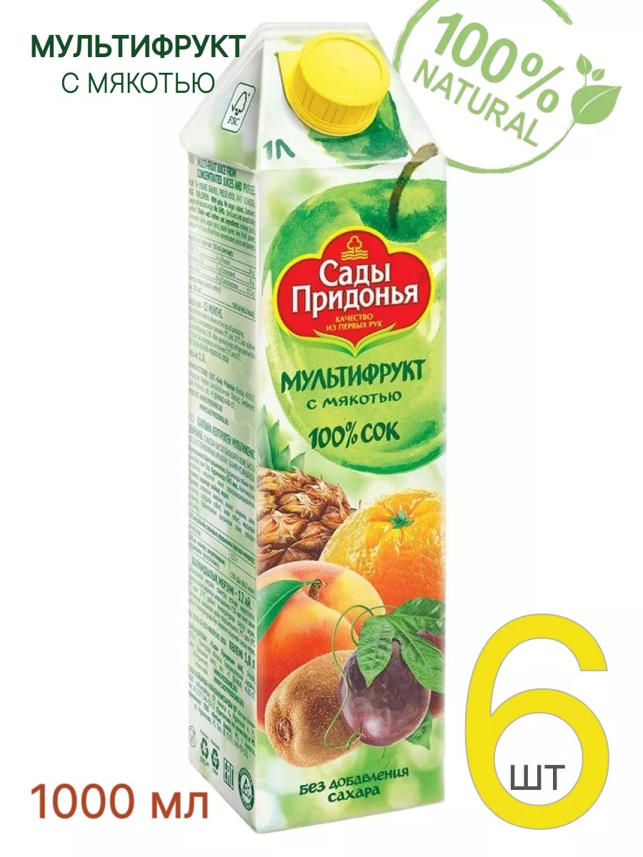 Сады Придонья Сок мультифруктовый без сахара 1 л, 6 шт