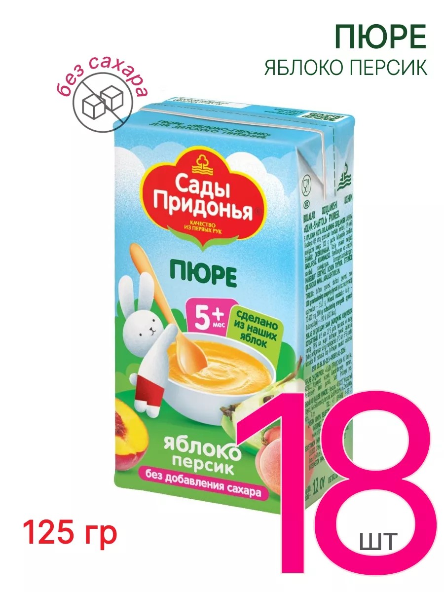 Пюре детское яблочно-персиковое без сахара 125 г, 18 шт