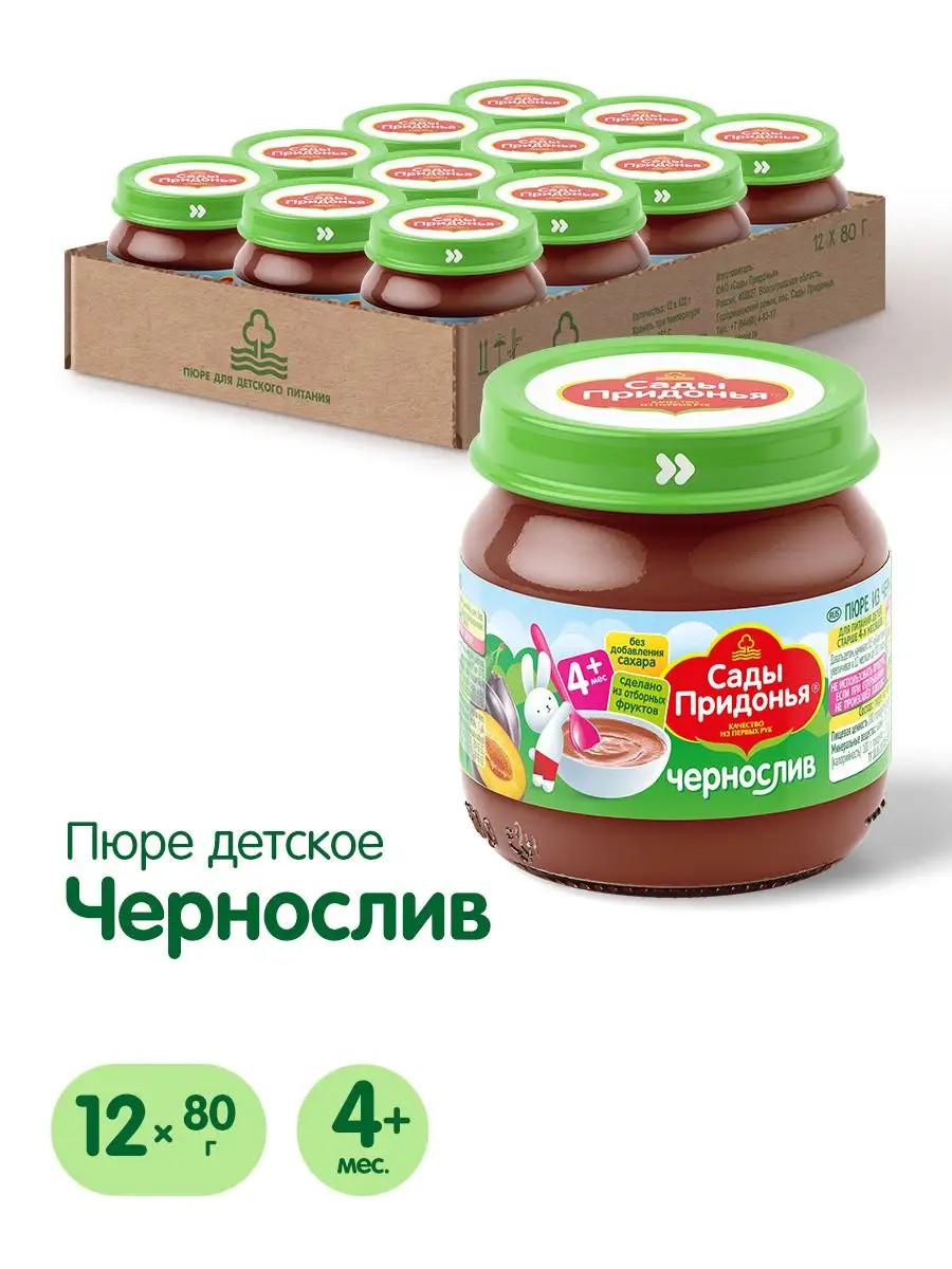 Детское пюре из чернослива Сады Придонья подходит для первого прикорма детей с 4 месяцев.
