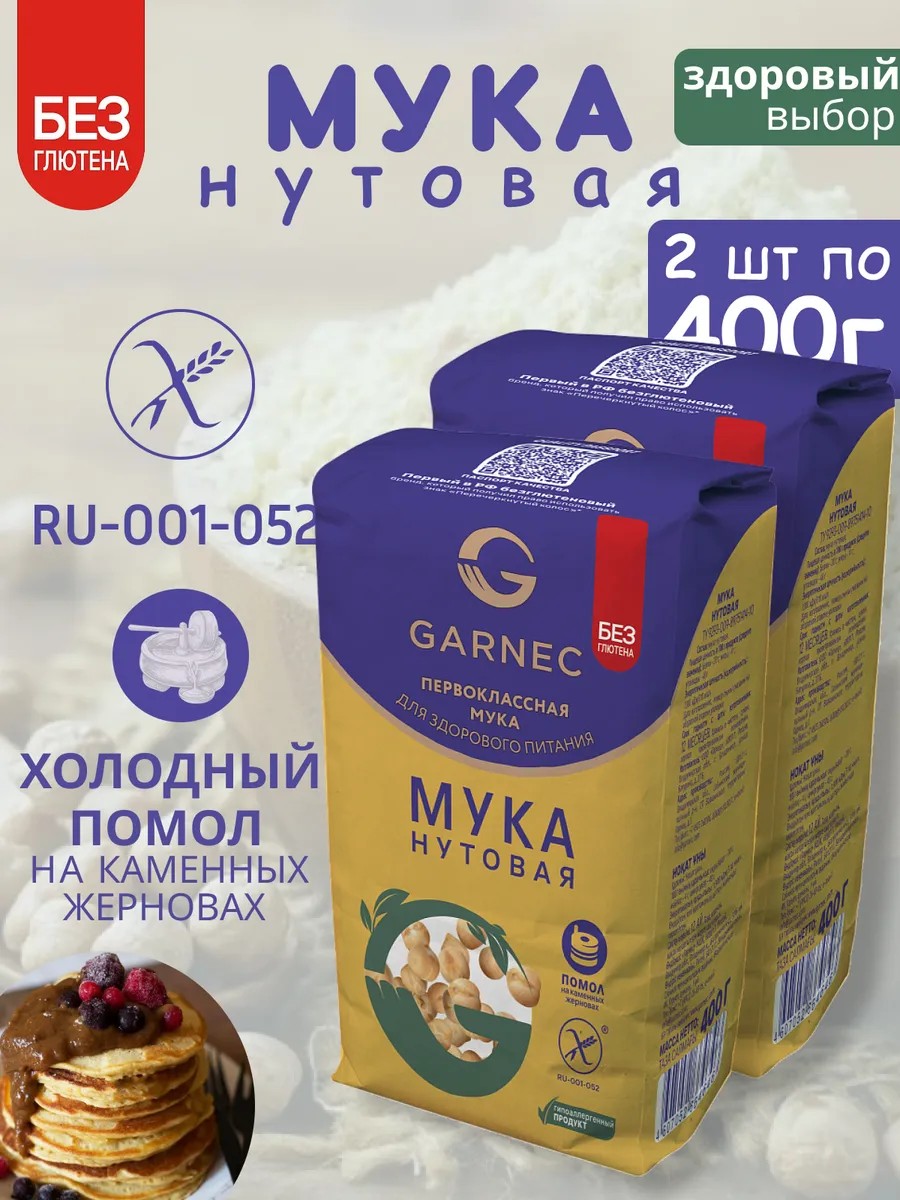 Гарнец Нутовая мука без глютена для выпечка 2шт по 400г