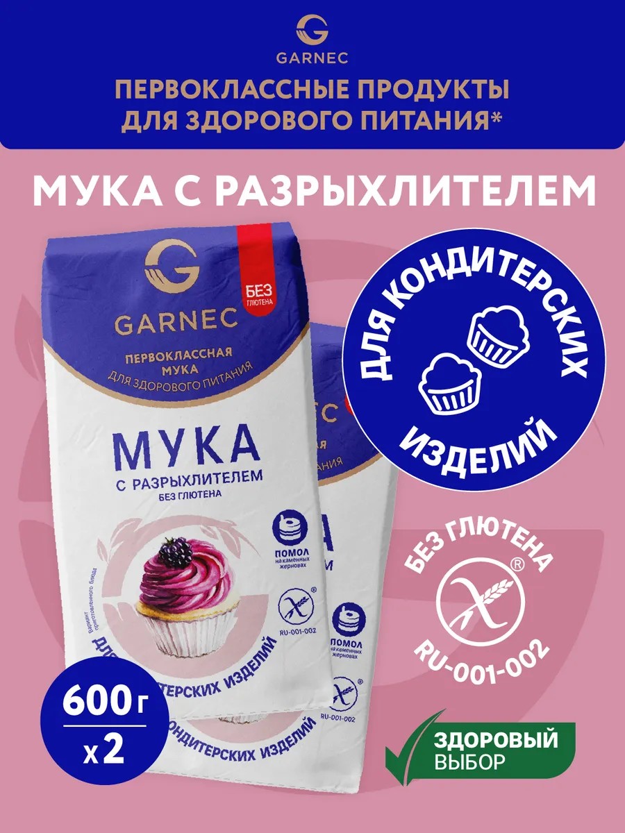 Гарнец Мука с разрыхлителем без глютена 2х600 г