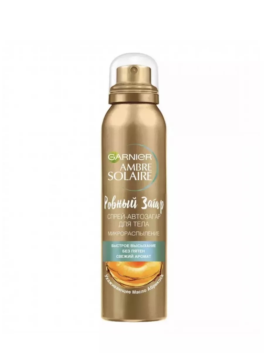 Сухой спрей-автозагар для тела Garnier Ambre Solaire «Ровный загар» — это красивый равномерный оттенок загара, естественный, как после пребывания на солнце. Удобный формат спрея с микрораспылением, позволяет добиться естественного загара без пятен и полос даже на труднодоступных участках тела (например, на голенях и спине). Спрей обладает свежим ароматом, содержит масло абрикосовой косточки и бронзирующий компонент растительного происхождения. Способ использования: распылите непосредственно на кожу тела непрерывными равномерными движениями, удерживая флакон на расстоянии 40 см и не прикасаясь к коже, дайте ей высохнуть. Используйте ежедневно до достижения желаемого оттенка загара, затем 1-2 раза в неделю.