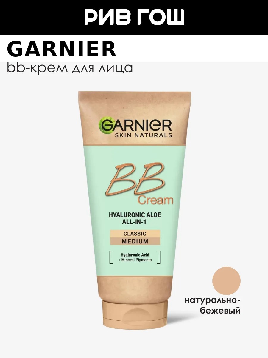 Наша новая формула. Легкая текстура создает ощущение комфорта и позволяет коже дышать. Формула обогащена: Гиалуроновой кислотой для интенсивного увлажнения, Экстрактом алоэ вера для смягчения и большего комфорта, Ультратонкими минеральными пигментами для естественного и сияющего результата. Используйте BB cream как тональное средство, увлажняющий крем, защиту SPF20. Доказанная эффективность BB cream: Мгновенно выравнивает тон кожи лица, Устраняет признаки усталости Придает сияние, 24 часа интенсивного увлажнения, защита SPF20 от ультрафиолетовых лучей. BB-крем Гиалуроновый Алоэ Уход 5в1 для нормальной кожи, 50 мл, Натурально-бежевый У нас Вы всегда сможете подобрать женскую и мужскую парфюмерию, декоративную косметику, а так же уходовые средства для волос, тела и лица. РИВ ГОШ вдохновляет дарить подарки каждый день.