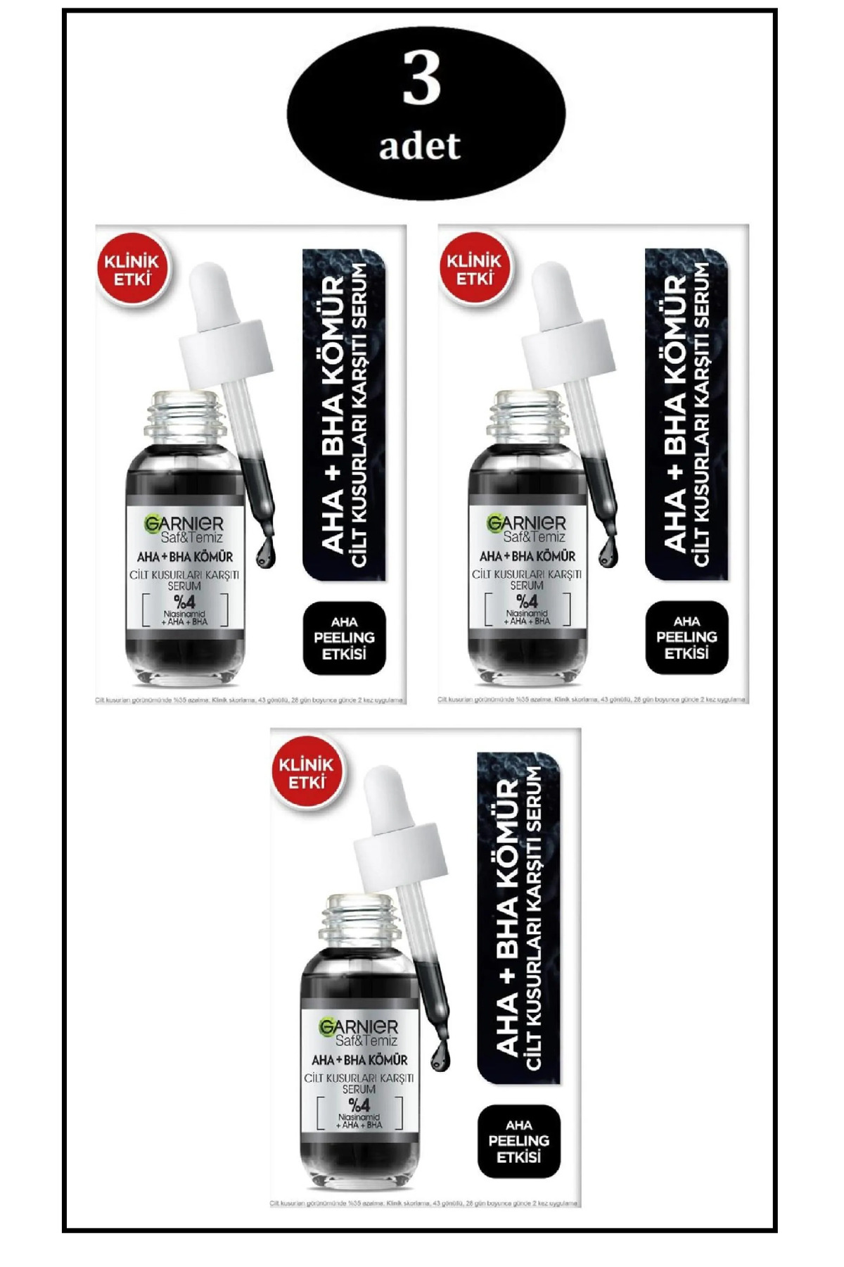 Garnier Charcoal Skin Imperfections Anti-Blackhead Black Serum Peeling Effect Aha Bha 30ml. X 3 PCS