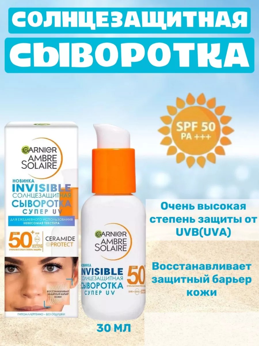Солнцезащитная сыворотка для лица СПФ50+ от GARNIER AMBRE SOLAIRE – идеальное средство для ежедневного ухода и защиты кожи. Эта легкая, но эффективная формула действует как база под макияж, обеспечивая надежную защиту от солнца. Высокий SPF обеспечивает уверенность в том, что ваша кожа защищена от вредных ультрафиолетовых лучей.