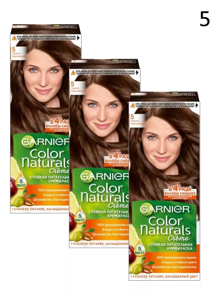 garnier Color Naturals 5 краска для волос светлый каштан, 3 штуки