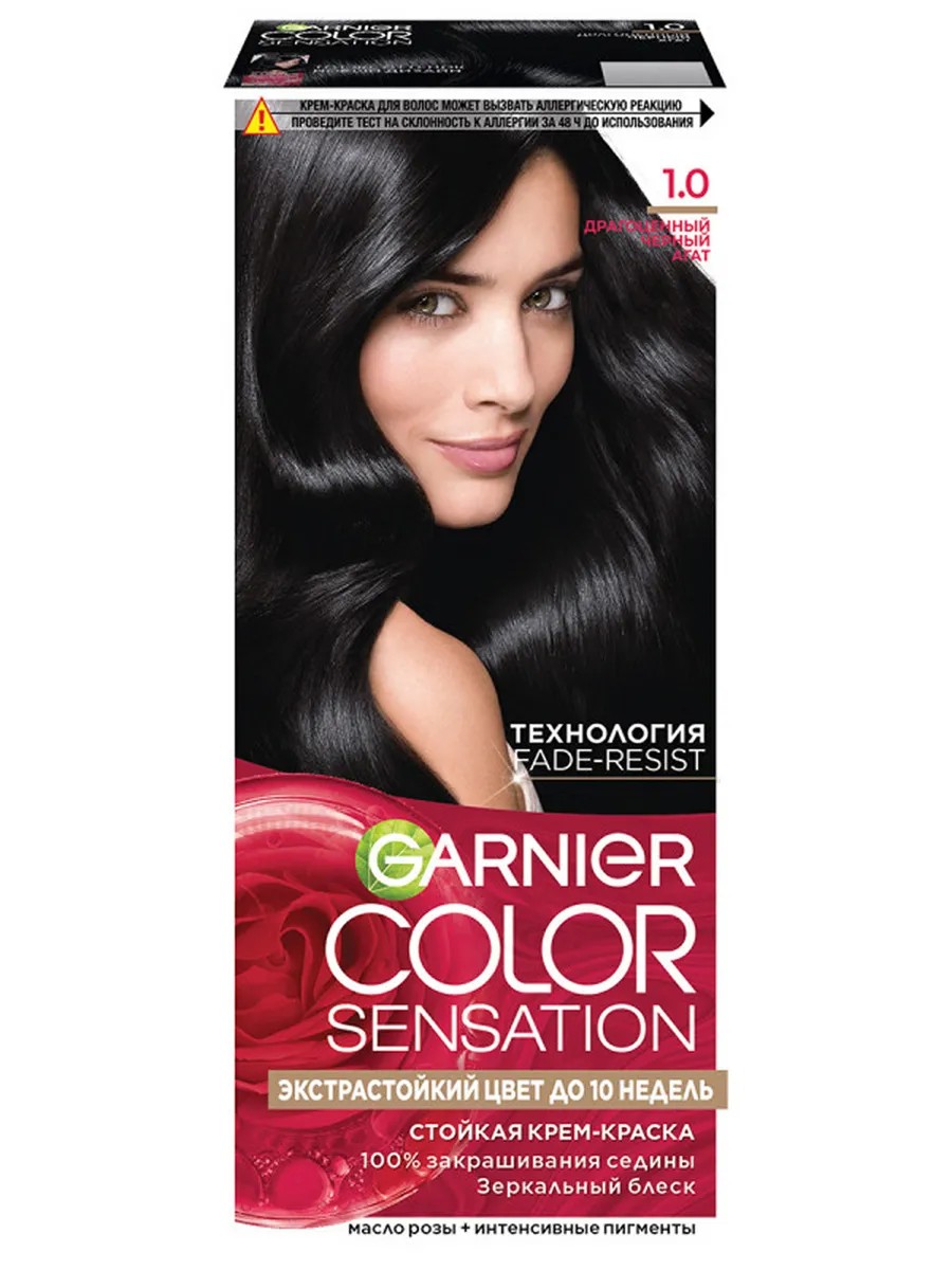 Стойкая крем-краска Color Sensation от Garnier, оттенок 1.0, Драгоценный черный агат, 112 мл.