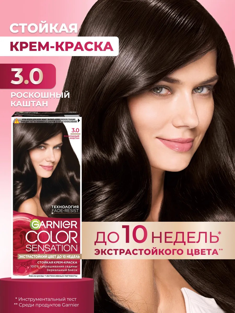 Стойкая крем-краска Color Sensation от Garnier, оттенок 3.0, Роскошный каштан.