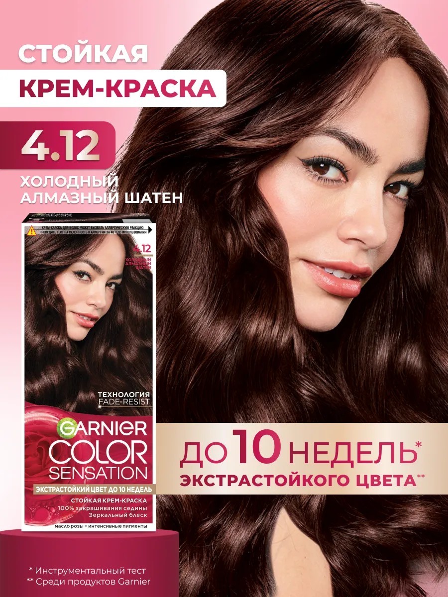 Стойкая крем-краска Color Sensation от Garnier, оттенок 4.12, Холодный Алмазный Шатен.
