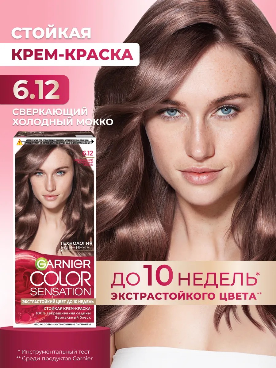 Стойкая крем-краска Color Sensation от Garnier, оттенок 6.12, Сверкающий Холодный Мокко.