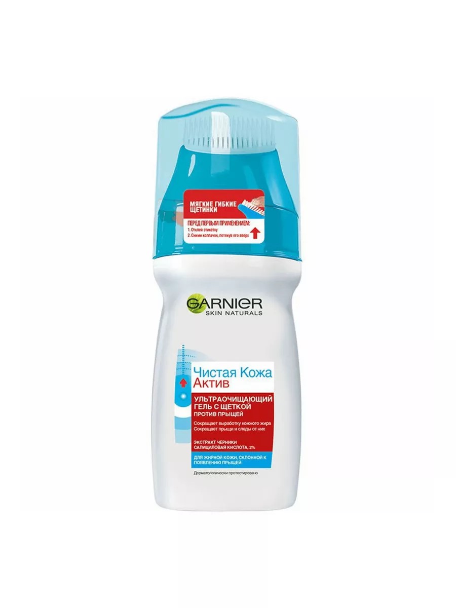 Очищающий гель с щеткой против прыщей. Инновация в борьбе с прыщами: 170 мягких и эластичных щетинок + высокоэффективная формула, обогащенная 2% салициловой кислотой, которая обладает антибактериальным действием, и регенерирующим фитокомплексом, обеспечивают усиленную эффективность в борьбе с прыщами. Глубоко и мягко очищает кожу, устраняет прыщи и жирный блеск.