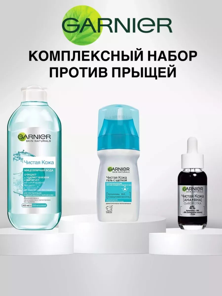 | Комплектация | Мицелярная вода Чистая кожа-1 шт; Гель очищающий -1 шт; сыворотка для лица - 1 шт |