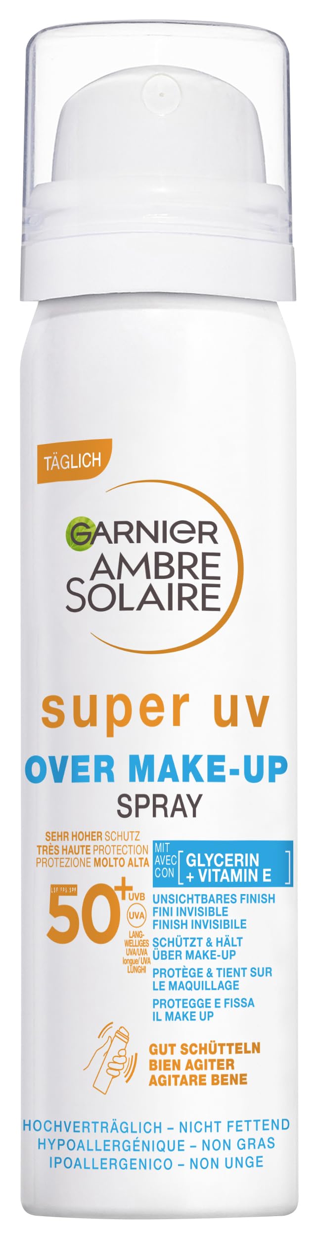 Fixing spray for make-up with sun protection with SPF 50 , prevents dark spots caused by the sun, formula to protect all skin types, light and invisible texture on the skin - skin protected against UV rays and the risk of sun impurities, intensive hydration, long-lasting fixation of make-up, without weighing it down, versatile and suitable for all skin types. Apply daily against sunlight, shake bottle, close eyes. and strengthens the lilies pen, spray generously on the face, repeat every 4 hours if necessary - vegan and not tested on animals formula under comedogenic control, enriched with glycerin with moisturizing properties, vitamin E and hyaluronic acid for deep moisture - contents: 1 x Garnier fixing spray with sunscreen SPF 50 , protection against dark spots, perfect make-up for a long time, incl. glycerin, vitamins Ina E and hyaluronic acid, Ambre Solaire 7 5 ml INGREDIENTS Butane • AQUA WATER • ISOPROPYL MYRISTATE • GLYCERIN • DIISOPROPYL SEBACATE • ETHYLHEXYL SALICYLATE • BIS-ETHYLHEXYLOXYPHENOL METHOXYPHENYL TRIAZINE • Butyl METHOXYDIBENZOYLMETHANE E • C1 2-15 alkyl benzoates • drometrizole trisiloxane • DICHYLYL CARBONATE • STYREN ACRYLATES COPOLYMER • PANISIC ACISIC ACID • TOCOPHEROL • SODIUM CHLORIDE • HYDROXYACETOPHENONE • SODIUM DODECYLBEN CENESULPHONATES • SODIUM HYALURONATE • PEG-30 DIPOLYHYDROXYSTEARATE • PEG-8 laurate • PEG-20 • ETHYLHEXYL TRIAZONE • DIISOPROPYL ADIPATE • TRISODIUM ETHYLENEDIAMINE DISUCCINEN ATE • NL YLON-12 • POLYMETHYLSILSESQUIOXANE • POLY C10-30 ALKYL ACRYLATE • DIMETHICONE • PROPANEDIOL • ISODODECANE • ISOSTEARYL ALCOHOL • PROPYLENE CARBONATE • Glycol • Perfume. FRAGRANCE • DISTEARDIMONIUM HECTORITE • METHYL METHACRYLATE CROSSPOLYMER • LAURYL PEG PPG-18 18 METHICONE (F.I.L. Z70014808 1). INSTRUCTIONS FOR USE Before using the Garnier Ambre Solaire super UV make-up spray with protection factor 50 and hyaluronic acid, shake well so that the ingredients mix together as best as possible. Then spray the spray generously onto the face. Keep eyes closed. If the mist comes into contact with the eyes, rinse them immediately under clean water. The spray is only suitable for use to protect against UVA and UVB radiation, but can also be applied over day care and over make-up. After use, allow the sun protection to work for a moment. In addition, the spray should be used several times during the day. SAFETY WARNING To check the composition of a particular product, the list of ingredients on the product should always be consulted. MANUFACTURER CONTACT INFORMATION 14, Rue Royale FR-75008 Paris See moreContents: 1 x Garnier fixative spray with sun protection SPF 50 , protection against dark spots, perfect long-lasting make-up, with glycerin, vitamin E and hyaluronic acid, Ambre Solaire, 75 ml. Vegan and cruelty-free formula under comedogenic control, enriched with glycerin with moisturizing properties, vitamin E and hyaluronic acid for deep moisture. Apply daily before sunbathing, shake bottle, close eyes and firm lips, spray generously on face, repeat every 4 hours if necessary. The skin is protected against UV rays and the risk of sun imperfections, intensive moisture, long-term fixation of make-up, without weighing it down, versatile and suitable for all skin types. Make-up fixing spray with sun protection SPF50 , prevents dark spots caused by the sun, formulated to protect all types of complexions, light and invisible texture on the skin.Garnier Fixerende make-upspray met beschermingsfactor 50 , bescherming tegen donkere vlekken, perfecte make-up voor een lange tijd, veganistische formule met glycerine, vitamine E en hyaluronzuur Fixeerspray voor make-up met zonnebescherming met SPF 50 , voorkomt donkere vlekken veroorzaakt door de zon, formule om alle huidtypes te beschermen, lichte en onzichtbare textuur op de huid - huid beschermd tegen uv-stralen en het risico op zononzuiverheden, intensieve hydratatie, langdurige fixatie van de make-up, zonder te verzwaren, veelzijdig en geschikt voor alle huidtypes. Dagelijks tegen zonlicht aanbrengen, fles schudden, sluit de ogen. en verstevigt de lelies ppen, royaal op het gezicht spuiten, indien nodig elke 4 uur herhalen - veganistische en dierproefvrije formule onder comedogene controle, verrijkt met glycerine met vochthoudende eigenschappen, vitamine E en hyaluronzuur voor diep vocht - inhoud: 1 x Garnier fixeerspray met zonnebrandcrème SPF 50 , bescherming tegen donkere vlekken, perfecte make-up voor lange tijd, incl. glycerine, vitamines Ina E en hyaluronzuur, Ambre Solaire 7 5 ml INGREDIËNTEN Butaan • AQUA WATER • ISOPROPYL MYRISTATE • GLYCERINE • DIISOPROPYL SEBACATE • ETHYLHEXYL SALICYLATE • BIS-ETHYLHEXYLOXYFENOL METHOXYFENYL TRIAZINE • Butyl METHOXYDIBENZOYLMETHANE E • C1 2-15 alkyl benzoaten • drometrizol trisiloxaan • DICHYLYL CARBONATE • STYREN ACRYLATEN COPOLYMER • PANISIC ACISIC ACID • TOCOPHEROL • SODIUM CHLORIDE • HYDROXYACETOFENONE • SODIUM DODECYLBENEN CENESULFONATEN • SODIUM HYALURONATE • PEG-30 DIPOLYHYDROXYSTEARATE • PEG-8 lauraat • PEG-20 • ETHYLHEXYL TRIAZONE • DIISOPROPYL ADIPATE • TRISODIUM ETHYLENEDIAMINE DISUCCINEN ATE • NL YLON-12 • POLYMETHYLSILSESQUIOXANE • POLY C10-30 ALKYL ACRYLATE • DIMETHICONE • PROPANEDIOL • ISODODECANE • ISOSTEARYL ALCOHOL • PROPYLENE CARBONATE • Glycol • Parfum. FRAGRANCE • DISTEARDIMONIUM HECTORITE • METHYL METHACRYLATE CROSSPOLYMER • LAURYL PEG PPG-18 18 METHICONE (F.I.L. Z70014808 1). GEBRUIKSAANWIJZING Voor gebruik van de Garnier Ambre Solaire super-uv-make-up spray met beschermingsfactor 50 en hyaluronzuur goed schudden, zodat de ingrediënten zich zo goed mogelijk met elkaar mengen. Vervolgens de spray royaal op het gezicht spuiten. Houd de ogen gesloten. Mocht de mist in de ogen komen, deze onmiddellijk onder schoon water uitspoelen. De spray is alleen geschikt voor gebruik ter bescherming tegen UVA- en UVB-straling