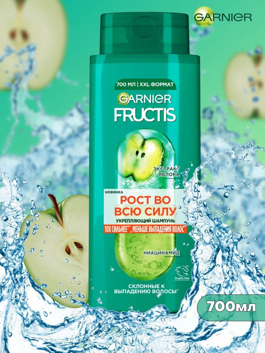 Женский Garnier fructis шампунь для жирных волос представляет систему усиления, которая сочетает в себе суперфрукт натурального происхождения с активными ингредиентами. Ваши волосы выглядят более здоровыми, блестящими и сильными после шампуня garnier фруктис. Шампунь против выпадения волосгарньер фрутис Рост Во Всю Силу обогащен двумя суперингредиентами: Экстрактом яблока и Ниацином, для придания волосам жизненной силы, сияния и восстановлении прочности волос. Доказано! Сухие Волосы становятся более прочными, стойкими и сияющими от корней до кончиков. Способ применения гарнер фрутисс шампуня для объема волос: массажными движениями нанесите шампунь на влажные волосы, распределите его по всей длине, а затем тщательно смойте тёплой водой, избегая попадания средства в глаза. Забудьте о секущихся кончиках и тусклой длине волос, используя ежедневно шампунь для жирных волос, фрути придаст блеск и объем ваших волосам, подойдет для восстановления волос.