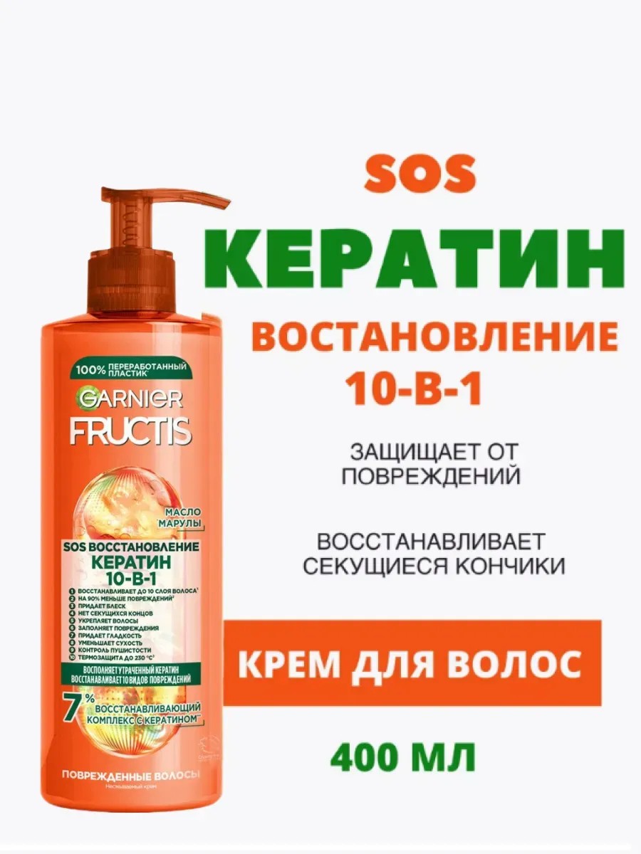 Новая формула FRUCTIS обогащена активным концентратом фруктов. Благодаря комбинации фруктов, витаминов В3, В6 и протеина лимона ваши волосы более сильные и выглядят здоровыми. Легкая текстура комплексного крема от FRUCTIS, обогащенная натуральным маслом Амлы и жидким амино-кератином, восстанавливает повреждения волос, вызванные укладкой, окрашиванием и химическим воздействием. Результат: волосы восстановлены, более сильные и гладкие, они защищены от термического воздействия до 230°С и химических повреждений.Способ использования и нанесения:Нанести на влажные или сухие волосы, особое внимание уделяя кончикам.