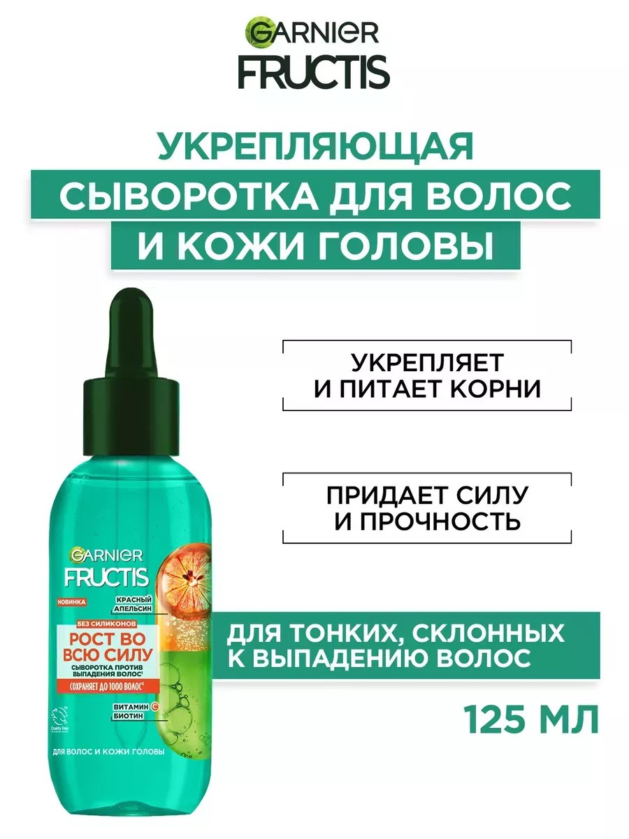 Новинка! Сыворотка Garnier Fructis «Рост во всю силу Красный Апельсин» предназначена для укрепления тонких, склонных к выпадению волос и кожи головы, для женщин и мужчин. Волосы в 10 раз сильнее*. ПРОКАЧАЙ СИЛУ СВОИХ ВОЛОС!