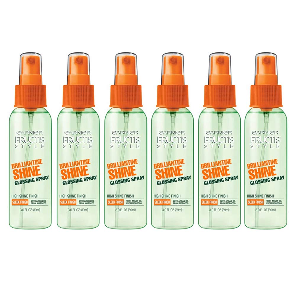 Garnier Fructis Style Brilliantine Shine Glossing Spray 3 Oz (Pack of 6) - Turn on the brilliantly styled hair with Garnier Fructis Style Brilliantine Shine Glossing Spray! HOW DOES IT WORK? Paraben-free glossing spray with Argan Oil from Morocco seals shine and moisture into hair, keeping it soft, glossy, and manageable. GET INSPIRED! Create a "Shining Sleek" look: Lightly spray over flat-ironed locks for a brilliant, polished shine. COMMITTED TO MAKING GARNIER A GREENER BEAUTY BRAND: As a leading global beauty brand, we aspire to create a positive impact by paving the way towards more and more sustainable beauty that's accessible to all of us. Additionally, all Garnier products, globally, are officially approved by Cruelty-Free International under the Leaping Bunny Program. How To Use: Hold bottle 6-8 inches from head and spray sparingly. For finer hair, spray product into hands, then gently smooth hands over hair. CAUTION: Flammable. Avoid fire, flame, and heat during application and until hair is thoroughly dry. Avoid spraying in the eyes.