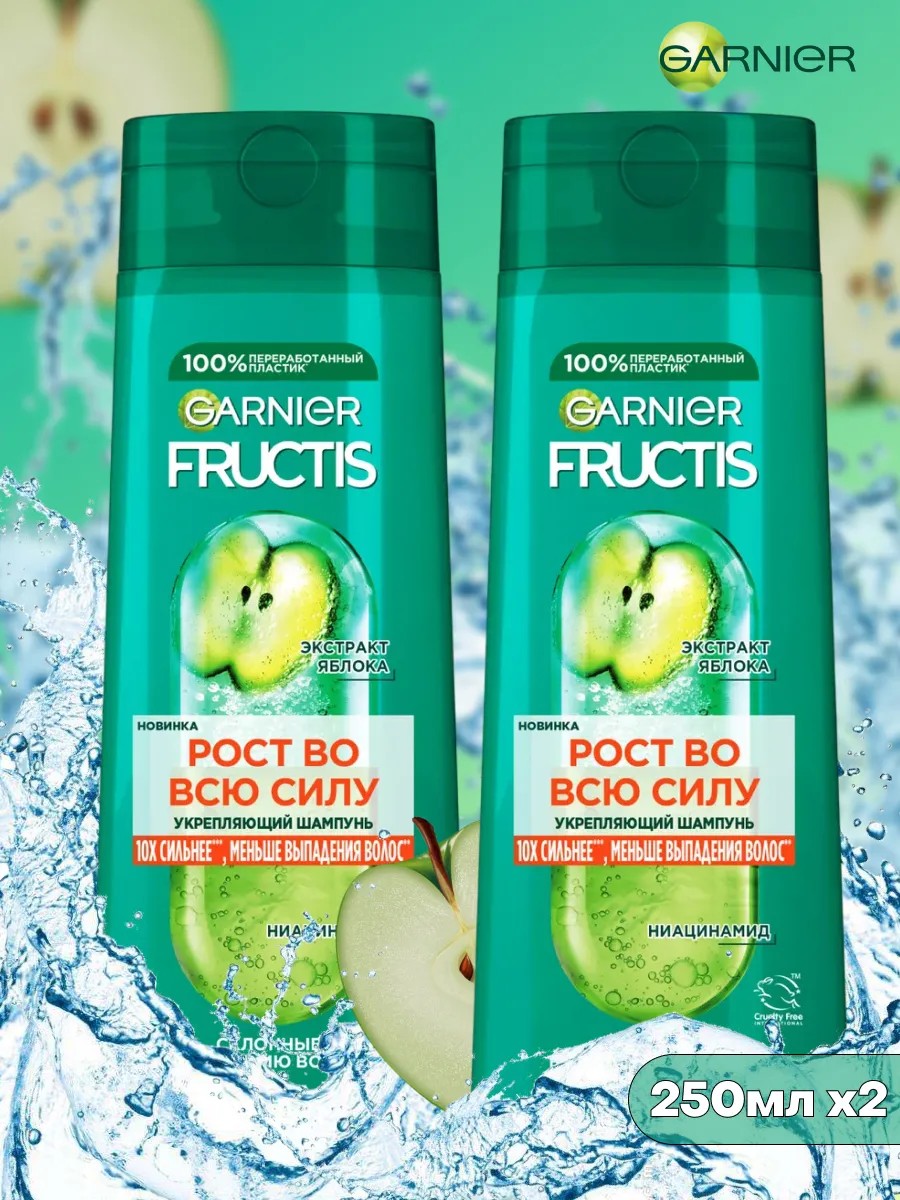 Женский Garnier fructis шампунь для волос представляет систему усиления, которая сочетает в себе суперфрукт натурального происхождения с активными ингредиентами. Ваши волосы выглядят более здоровыми и сильными после применения шампуня garnier фруктис. Шампунь гарньер фрутис "Рост Во Всю Силу" обогащен двумя суперингредиентами: Экстрактом яблока и Ниацином, для придания волосам жизненной силы, сияния и восстановлении прочности волос. Доказано! Волосы становятся более прочными, стойкими и сияющими от корней до кончиков. Способ применения гарнер фрутисс - шампунь для объема волос: массажными движениями нанесите на влажные волосы, распределите его по всей длине, а затем тщательно смойте тёплой водой, избегая попадания средства в глаза. Подойдет от выпадения волос и объема волос.