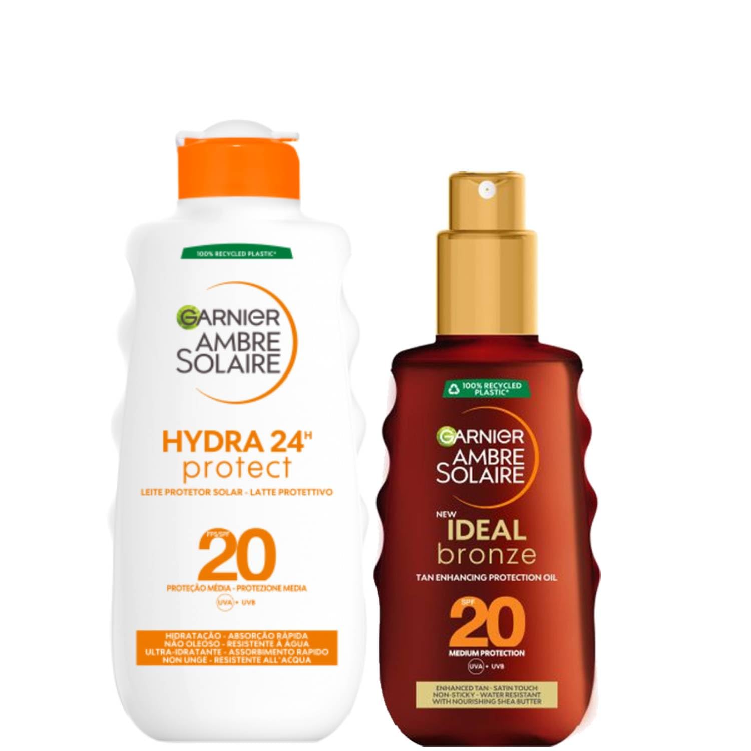 Garnier sun care for face and body offers a complete range of products designed to protect, hydrate, and enhance the skin during sun exposure. The line includes face and body sunscreens with varying sun protection factors (SPF), adapted to every skin type and need, from the lowest SPFs for gradual tanning to the highest for total protection against UVA and UVB rays. Thanks to innovative formulations, Garnier sunscreens offer advanced protection, hydrating the skin and preventing sunburn and premature skin aging. The line also includes after-sun products for face and body, formulated to soothe and refresh the skin after sun exposure, leaving it soft, hydrated, and relaxed. These products are perfect for soothing the skin and prolonging your tan, promoting a healthy and radiant appearance. Furthermore, Garnier's tanning products are designed to enhance your skin tone and provide a natural, even, golden glow without compromising skin health. These tanners, combined with sun protection, allow you to achieve a perfect and safe tan. Whatever your skin type or your goal (protection, hydration, or tanning), the Garnier sun care line is the perfect partner for enjoying the sun safely. SAFETY WARNING For external use only.Whatever your skin type or goal (protection, hydration, or tanning), the Garnier sun care line is the perfect ally for enjoying the sun safely. Garnier's tanning products are designed to enhance your skin tone, giving you a natural, even, golden glow without compromising your skin's health. Combined with sun protection, these tanners allow you to achieve a perfect and safe tan. These products are ideal for soothing the skin and prolonging your tan, promoting a healthy and radiant appearance. Thanks to innovative formulations, Garnier sun care products offer advanced protection, hydrating the skin and preventing sunburn and premature aging. The line also includes after-sun products for the face and body, formulated to soothe and refresh skin after sun exposure, leaving it soft, hydrated, and relaxed. The line includes face and body sunscreens with varying sun protection factors (SPF), tailored to every skin type and need, from the lowest SPFs for gradual tanning to the highest for complete protection against UVA and UVB rays. Garnier Sunscreens for face and body offer a comprehensive range of products designed to protect, hydrate, and enhance the skin during sun exposure.Garnier Ambre Solaire Lait Protecteur Pour Le Corps SPF 20 200 Ml Et Ideal Bronze Huile Bronzage Pour Le Corps SPF 20 150 MlDESCRIPTION DU PRODUIT DESCRIPTION DU PRODUIT Garnier solaire pour le visage et le corps offre une gamme complète de produits conçus pour protéger, hydrater et mettre en valeur la peau pendant l'exposition au soleil. La ligne comprend une protection solaire visage et corps avec différents facteurs de protection (SPF), adaptés à chaque type de peau et de besoins, des SPF les plus bas pour un bronzage progressif, aux plus hauts pour une protection totale contre les rayons UVA et UVB. Grâce à des formulations innovantes, les solaires Garnier offrent une protection avancée, en hydratant la peau et en prévenant les brûlures et le vieillissement cutané prématuré. La ligne comprend également un après-soleil pour le visage et le corps, étudiés pour apaiser et rafraîchir la peau après l'exposition au soleil, la gardant douce, hydratée et détendue. Ces produits sont parfaits pour apaiser la peau et prolonger le bronzage, favorisant un aspect sain et lumineux. De plus, les produits bronzants de Garnier sont conçus pour sublimer la couleur de la peau et lui offrir une coloration dorée, naturelle et uniforme, sans compromettre la santé de la peau. Ces bronzants, combinés à une protection solaire, vous permettent d'obtenir un bronzage parfait et sûr. Quel que soit le type de peau ou votre objectif (protection, hydratation ou bronzage), la ligne solaire Garnier est l'allié parfait pour profiter du soleil en toute sécurité. AVERTISSEMENT DE SÉCURITÉ Usage extérieur uniquement.Quel que soit le type de peau ou votre objectif (protection, hydratation ou bronzage), la ligne solaire Garnier est l'allié parfait pour profiter du soleil en toute sécurité. De plus, les produits bronzants de Garnier sont conçus pour sublimer la couleur de la peau et lui offrir une coloration dorée, naturelle et uniforme, sans compromettre la santé de la peau. Ces bronzants, combinés à une protection solaire, vous permettent d'obtenir un bronzage parfait et sûr. Ces produits sont parfaits pour apaiser la peau et prolonger le bronzage, favorisant un aspect sain et lumineux. Grâce à des formulations innovantes, les solaires Garnier offrent une protection avancée, en hydratant la peau et en prévenant les brûlures et le vieillissement cutané prématuré. La ligne comprend également un après-soleil pour le visage et le corps, étudiés pour apaiser et rafraîchir la peau après l'exposition au soleil, la gardant douce, hydratée et détendue. La ligne comprend une protection solaire visage et corps avec différents facteurs de protection (SPF), adaptés à chaque type de peau et de besoins, des SPF les plus bas pour un bronzage progressif, aux plus hauts pour une protection totale contre les rayons UVA et UVB. Garnier Solaires pour le visage et le corps offre une gamme complète de produits conçus pour protéger, hydrater et mettre en valeur la peau pendant l'exposition au soleil.