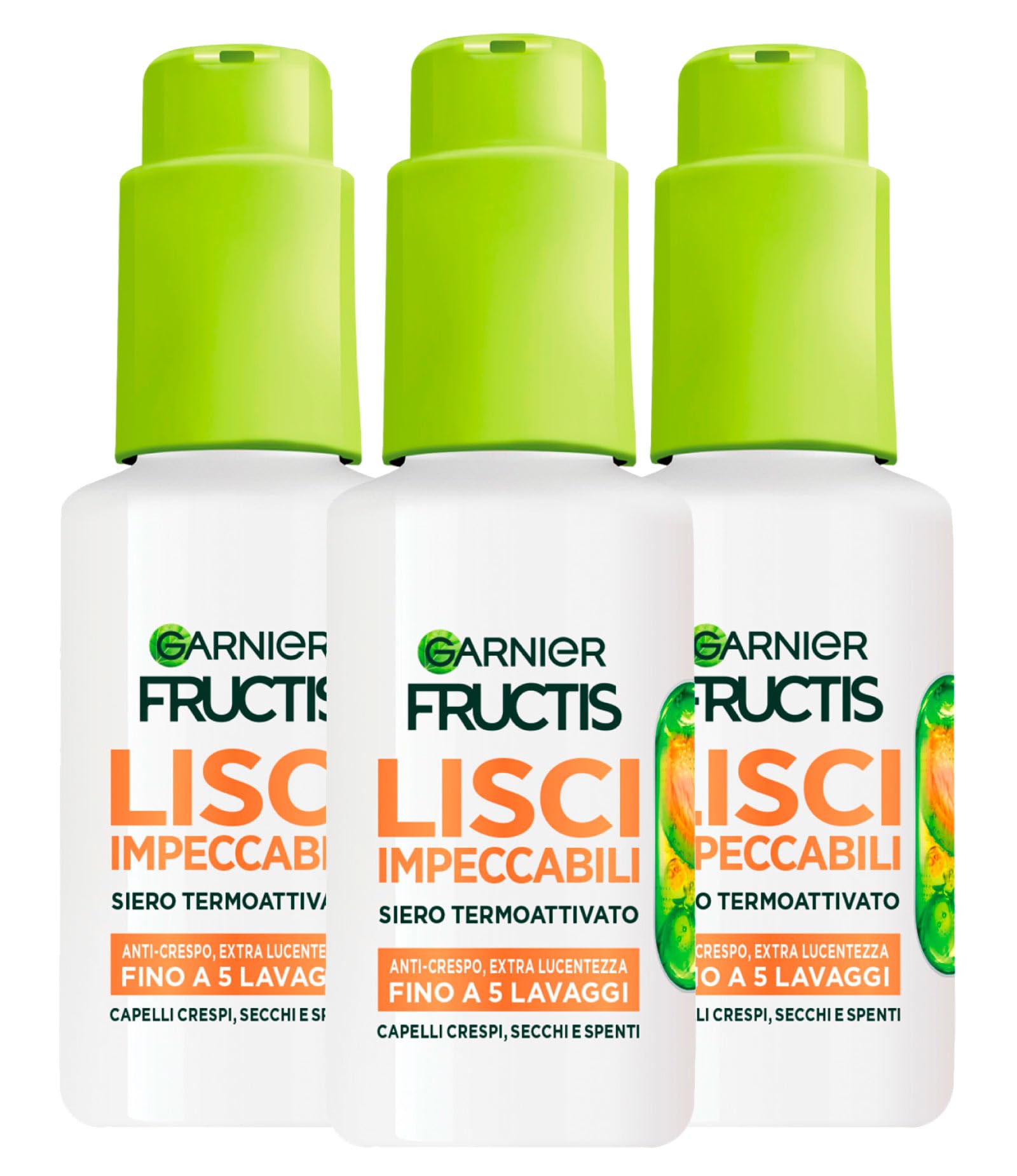 Shake the serum well and apply evenly throughout your hair. Distribute the product particularly on specific areas that require extra attention. Vegan formula with a light, airy texture. It won't weigh hair down or leave it greasy. Innovative Alpha-Silane technology that can withstand heat up to 230 C. When activated by the heat of a hairdryer or straightener, the serum forms an invisible hydrophobic matrix that coats each strand with a waterproof film. This heat-protecting serum provides immediate anti-frizz effect for silky, shiny, and humidity-resistant hair. Pack of 3 bottles of Garnier Fructis Smooth Flawless Heat-Protecting and Heat-Activated Serum, 50ml each.