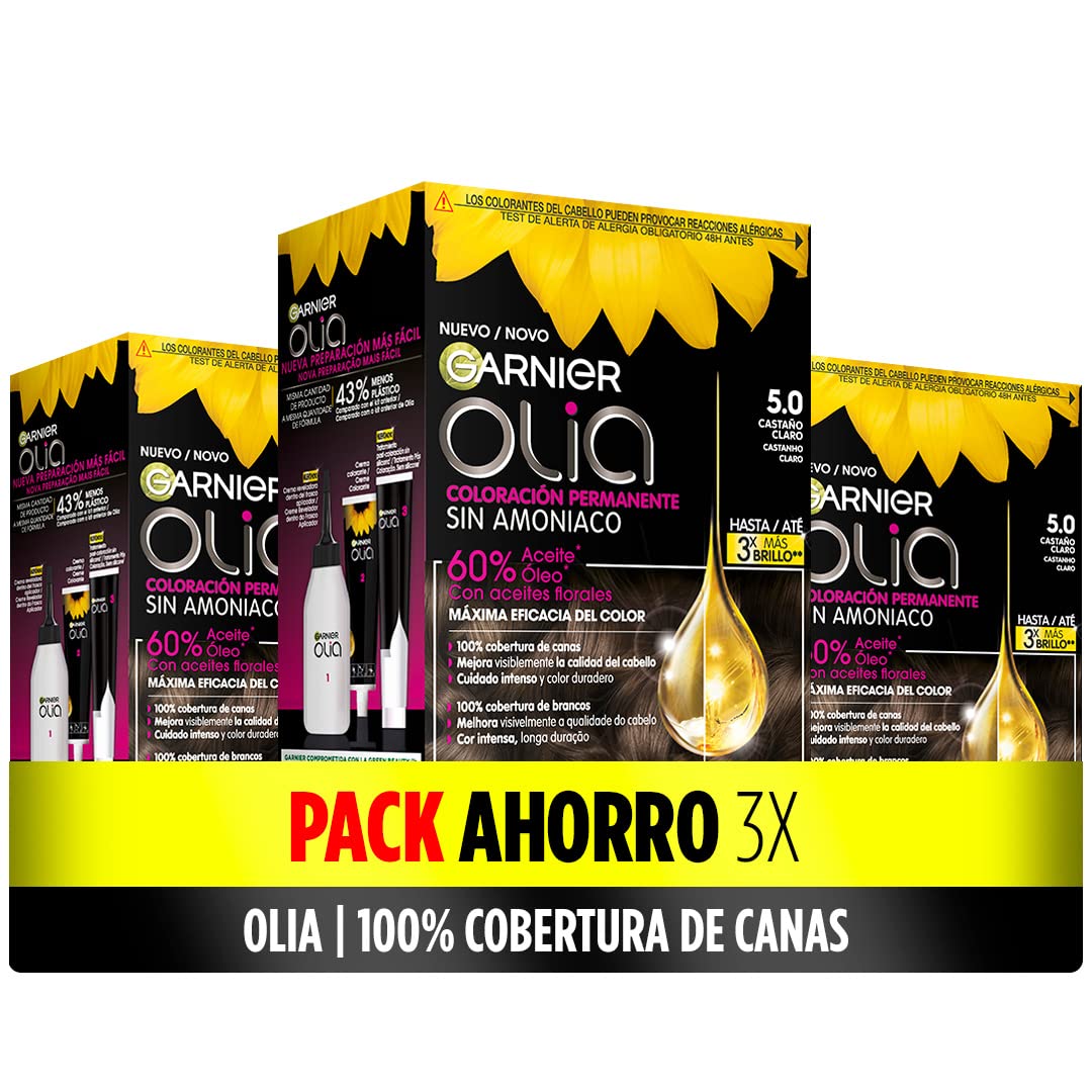 Garnier garnier Olia Garnier Ammonia-Free Permanent Hair Colour for a Pleasant Odour with Natural Floral Oils Shade 5.0 Light Brown Pack of 3