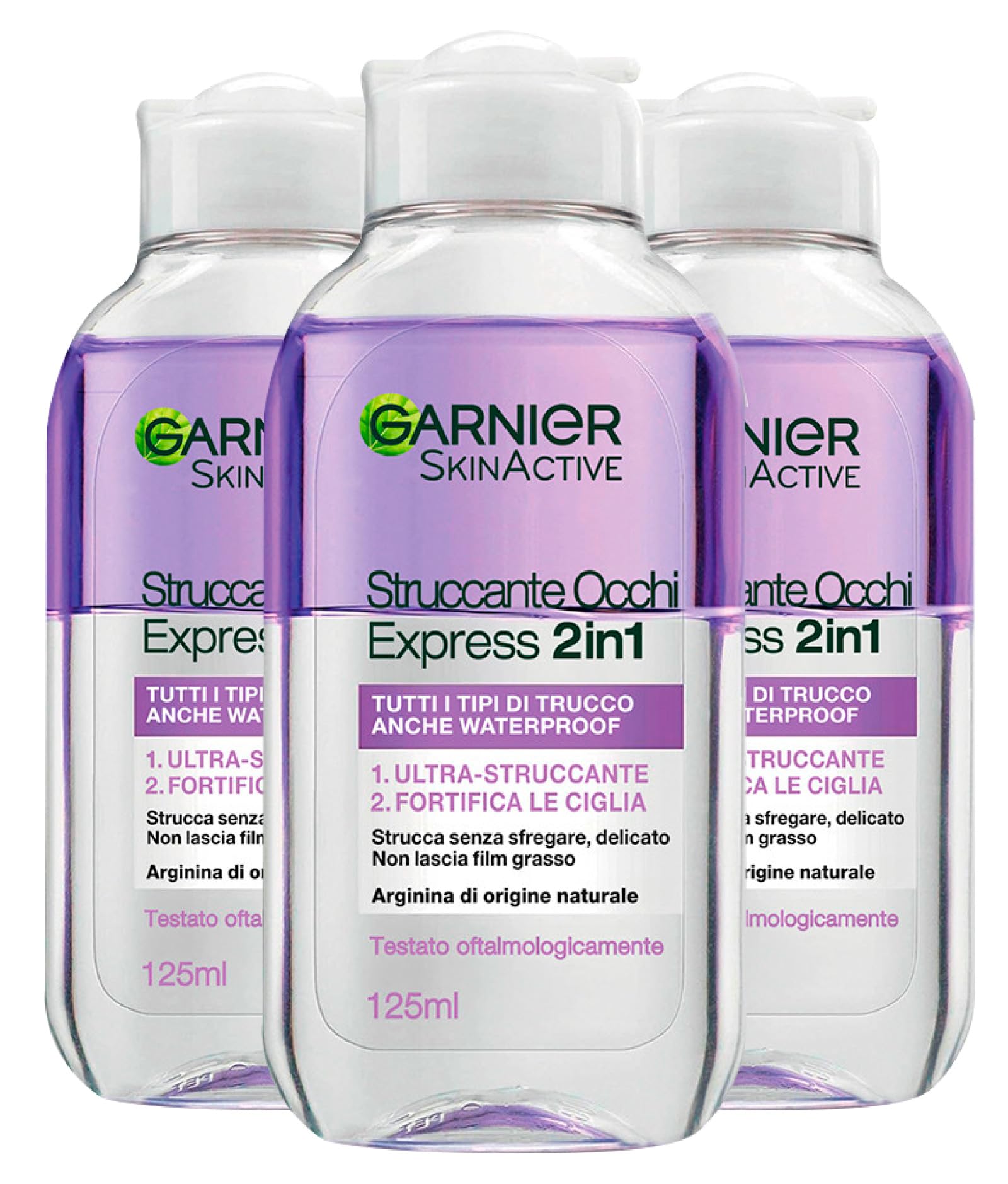 Garnier Skin Active Démaquillant Yeux Express 2 en 1 Supprime le maquillage Waterproof Fortifie les Cils Formule délicate avec Arginine d'origine naturelle – 3 flacons de 125 ml 3 x Express 2 en 1