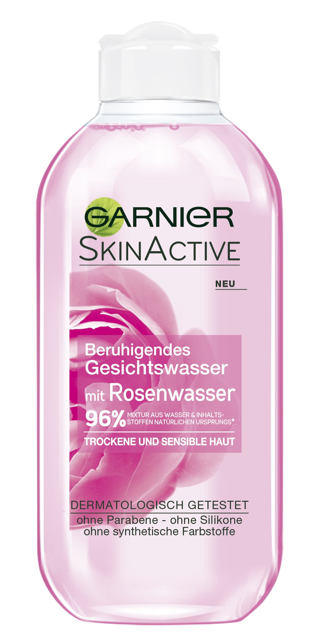 The refreshing rosewater toner is a botanical skincare product specially formulated for dry and sensitive skin. It effectively and quickly removes all traces of makeup, impurities, and dirt without irritating the skin. The facial toner contains a blend of 96 water and naturally derived ingredients – free from parabens, silicones, and synthetic dyes – making facial cleansing particularly gentle. It is also enriched with rosewater, known for its soothing and optimally hydrating effect – leaving skin feeling pleasant and refreshed after every application. The facial toner is ideal for daily facial cleansing after makeup removal, leaving skin feeling clean, clear, and fresh. Apply to the face with a cotton pad after removing makeup. No rinsing required. INGREDIENTS Aqua Water • GLYCERIN • ALCOHOL DENAT. Damask rose flower water, sodium hydroxide, sodium phytate, arginine, propanediol, caprylyl glucoside, citric acid, linalool, fragrance. RAGRANCE (F.I.L B195572 1) DIRECTIONS 1. Remove the toner from its packaging. 2. Use the toner for daily facial cleansing. 3. Soak a cotton pad or cotton ball in the toner. 4. Gently wipe your face with the cotton pad. 5. Rinse your face with water or pat dry. SAFETY WARNING Avoid contact with eyes. Do not ingest. For external use only. See morePackage contents: Refreshing and gentle rosewater toner for sensitive and dry skin, 200 ml. Particularly gentle cleansing thanks to its blend of 96 water and naturally derived ingredients, free from silicone and parabens. Use: Suitable for daily facial cleansing on normal and combination skin, thanks to its gentle, fragrance-free formula. Result: Deeply cleansed skin, leaving it feeling refreshed and nourished throughout the day and after each use. Refreshing facial toner for dry and sensitive skin, with rosewater for gentle and mild facial cleansing without skin irritation.Garnier Skin Active Tonique rafraîchissant à l'eau de rose, nettoyage doux pour peaux sèches et sensibles, 200 ml 1DESCRIPTION DU PRODUIT DESCRIPTION DU PRODUIT Le tonique rafraîchissant à l'eau de rose est un soin botanique spécialement conçu pour les peaux sèches et sensibles. Ainsi, tous les restes de maquillage, impuretés et saletés peuvent être éliminés efficacement et en un tour de main, sans irriter la peau. Le tonique facial contient un mélange de 96 d'eau et d'ingrédients d'origine naturelle - sans parabènes, silicones et colorants synthétiques, ce qui rend le nettoyage du visage particulièrement toléré. En outre, il est enrichi en eau de rose, connue pour son effet apaisant et hydratant la peau de manière optimale – pour une sensation agréable et agréable après chaque application. Le tonique visage est idéal pour le nettoyage quotidien du visage après le démaquillage et laisse une peau pure, claire et fraîche. Appliquer après le démaquillage avec un coton sur le visage. Aucun rinçage nécessaire. INGRÉDIENTS Aqua Water• GLYCERINE • ALCOHOL DENAT. Eau de fleur rose Damascena, hydroxyde de sodium, phytate de sodium, arginine, propanédiol, caprylyl, glucoside, citric acid, acide, linalool, parfum. RAGRANCE (F.. I.L B195572 1) MODE D'EMPLOI 1. Retirez le tonique de son emballage. 2. Utilisez le tonique pour le nettoyage quotidien du visage. 3. Imbibez un coton ou une boule de coton dans le tonifiant. 4. Nettoyez votre visage en profondeur en faisant glisser le coton sur votre peau. 5. Rincez ensuite votre visage avec de l'eau ou séchez-le doucement. AVERTISSEMENT DE SÉCURITÉ Évitez tout contact avec les yeux. Ne pas ingérer. Usage externe uniquement. Voir plusContenu de l'emballage : tonique rafraîchissant et doux à l'eau de rose pour peaux sensibles et sèches, 200 ml. Nettoyage particulièrement doux grâce au mélange de 96 d'eau et d'ingrédients d'origine naturelle, sans silicone ni parabène. Utilisation : convient pour le nettoyage quotidien du visage sur peaux normales et mixtes, grâce à sa formule douce et sans parfum. Résultat : peau nettoyée en profondeur, sensation de peau rafraîchissante et nourrie tout autour de la journée et après chaque application. Tonique rafraîchissant pour le visage pour les peaux sèches et sensibles, avec de l'eau de rose pour un nettoyage doux et doux du visage sans irritation de la peau.