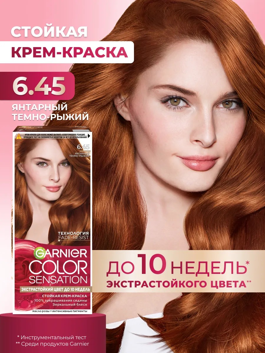 Стойкая крем-краска Color Sensation от Garnier, оттенок 6.45, Янтарный Темно-Рыжий.