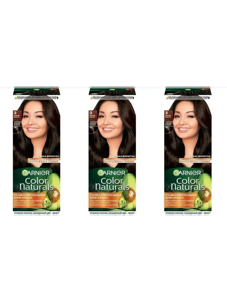 garnier Краска для волос Color Naturals тон 3.0 Тёмный каштан, 3 шт
