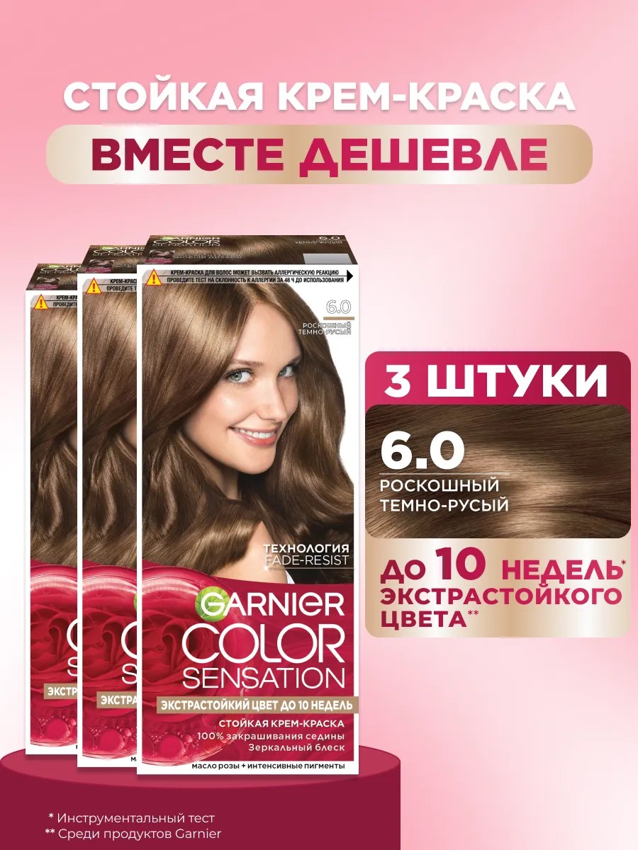 Стойкая крем-краска Color Sensation от Garnier, оттенок 6.0, Роскошный темно-русый.