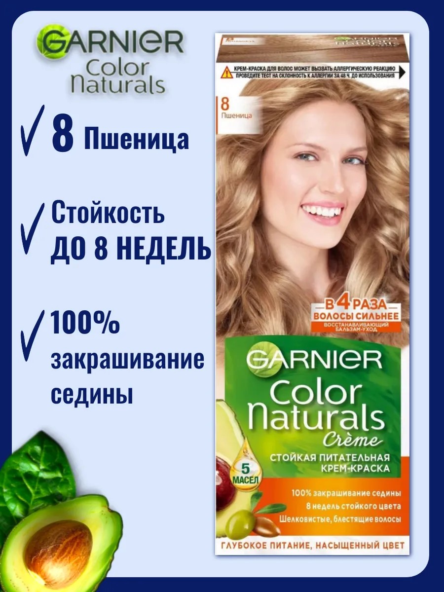 Кремовая формула стойкой питательной крем-краски для волос Garnier Color Naturals Creme от Garnier (Гарниер) проникает глубоко внутрь волоса, питает его во время окрашивания и наполняет насыщенным цветом. Насыщенный цвет до 8 недель и интенсивный питательный уход. Стойка краска для волос Гарньер блонд Color Naturals предлагает максимальное закрашивание седины, стойкое окрашивание или осветления волос без желтизны и нежный уход за волосами. Ухаживающий бальзам с восстанавливающими маслами насыщает волосы питательными компонентами, смягчает, придает шелковистость, делая их в 4 раза сильнее.Результат:- питает и разглаживает волосы.- создает на поверхности волос защитный барьер против повреждений.- цвет зафиксирован и защищен от вымывания до 8 недель.- закрашивание 100% седины.- волосы в 4 раза более сильные.Активные вещества:Масло оливы:- содержит протеины, минералы и витамины, интенсивно питает волосы.Масло авокадо:- богато олеиновой кислотой и мононенасыщенными жирами, что делает его одним из немногих масел, способных проникать в кутикулу волос и увлажнять их, а не просто покрывать.Масло ши:- помогает волосам обретать защитный барьер от внешних воздействий.- чешуйки плотно облегают стержень волоса, не позволяя цвету легко вымываться.Масло клюквы:- природный антиоксидант для защиты окрашенных волос.- благодаря ему волосы становятся более крепкими и блестящими.Масло арганового дерева:- возвращает волосам блеск, предотвращает их спутывание и сечение кончиков, обладает нежным ореховым ароматом.В комплект входит:- флакон с молочком-проявителем (60 мл).- тюбик с крем-краской (40 мл).- бальзам-уход, обогащенный 5 маслами (12 мл).- инструкция и пара перчаток. Способ применения:- смешайте крем-краску и молочко-проявитель.- нанесите на волосы- подождите рекомендуемое количество минут и смойте.- нанесите бальзам;.- смойте.Хранить в недоступном для детей месте.