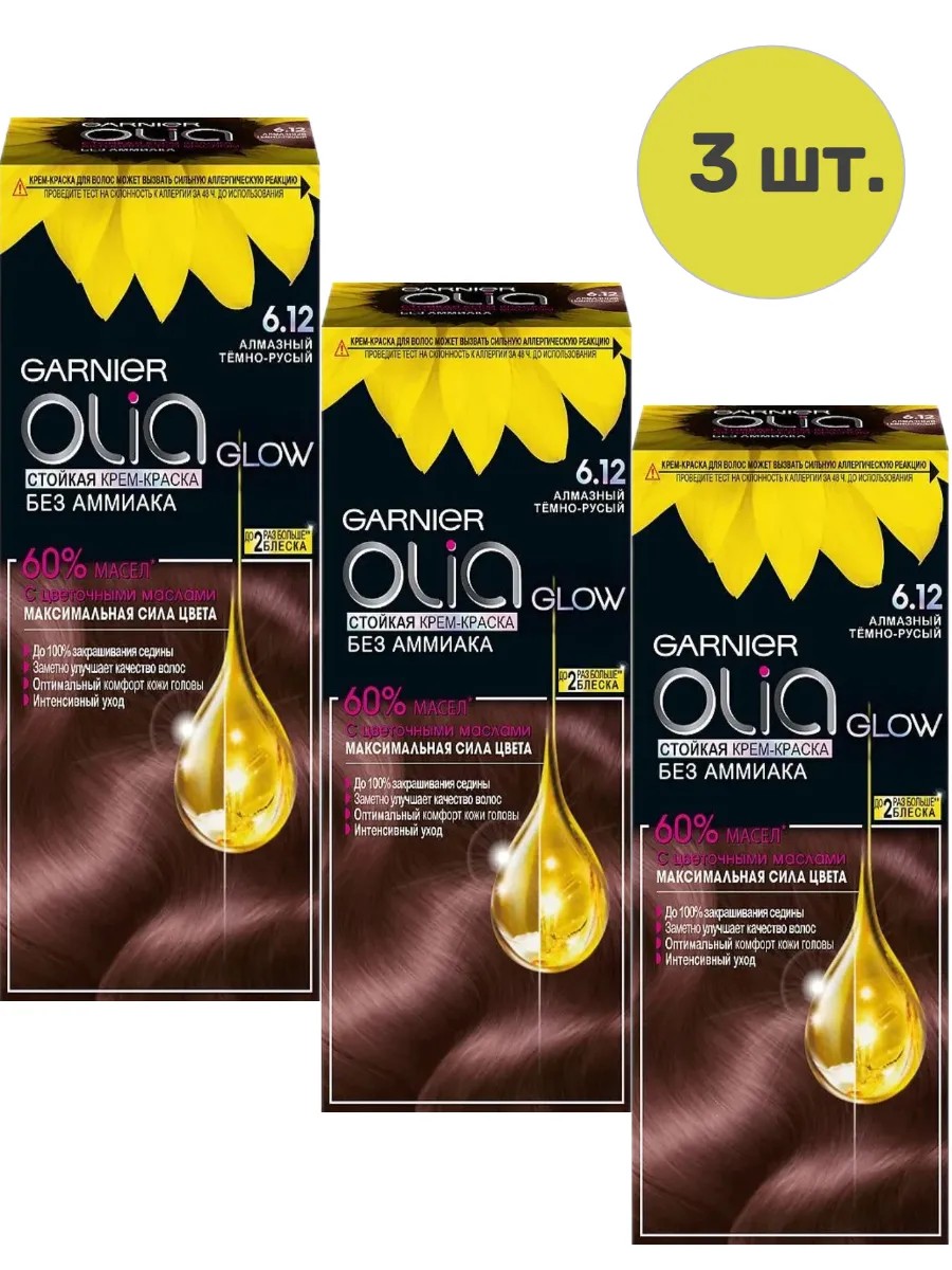 garnier Краска для волос OLIA тон 6.12 (алмазный темно-русый ) 3шт.