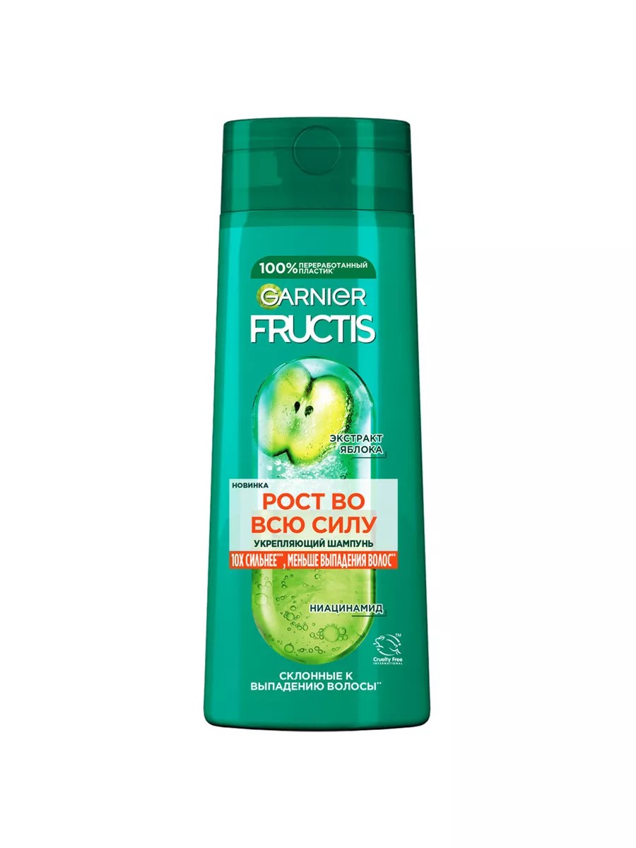 СЛАБЫЕ, ХРУПКИЕ ВОЛОСЫ? Fructis представляет систему усиления, которая сочетает в себе суперфрукт натурального происхождения с активными ингредиентами. Ваши волосы выглядят более здоровыми и сильными. Шампунь Рост Во Всю Силу обогащен двумя суперингредиентами: Экстрактом яблока и Ниацином, для придания волосам жизненной силы, сияния и восстановлении прочности волос. Доказано! Волосы становятся более прочными, стойкими и сияющими от корней до кончиков.Способ использования и нанесения:Нанесите на влажные волосы, распределите по всей голове массирующими движениями, затем смойте.