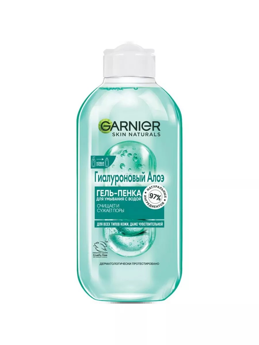 GARNIER, гиалуроновый алоэ гель-пенка, 200 мл. Этот гель-пенка для умывания обогащен Органическим Алоэ Вера и Гиалуроновой кислотой, глубоко очищает кожу, смягчает её и придает ощущение комфорта. Способ использования и нанесения: Вспеньте в ладонях небольшое количество геля и нанесите на влажную кожу лица, помассируйте и тщательно смойте.