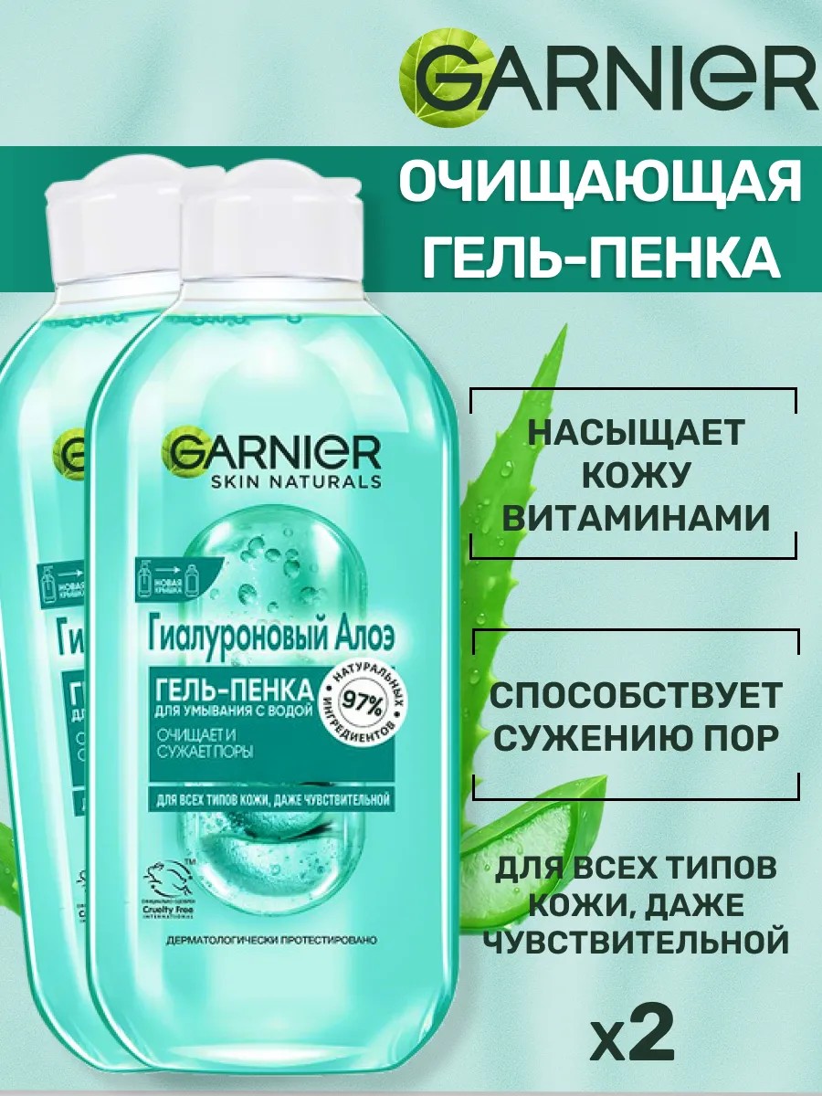Garnier Skin Naturals Гиалуроновый Алоэ Гель-пенка для умывания обогащен органическим Алоэ Вера и Гиалуроновой кислотой, удаляет излишки кожного жира и загрязнения, делает поры менее заметными.