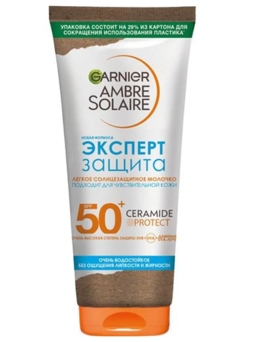 Легкое солнцезащитное молочко Эксперт Защита SPF 50+ надежная защита для чувствительной кожи.