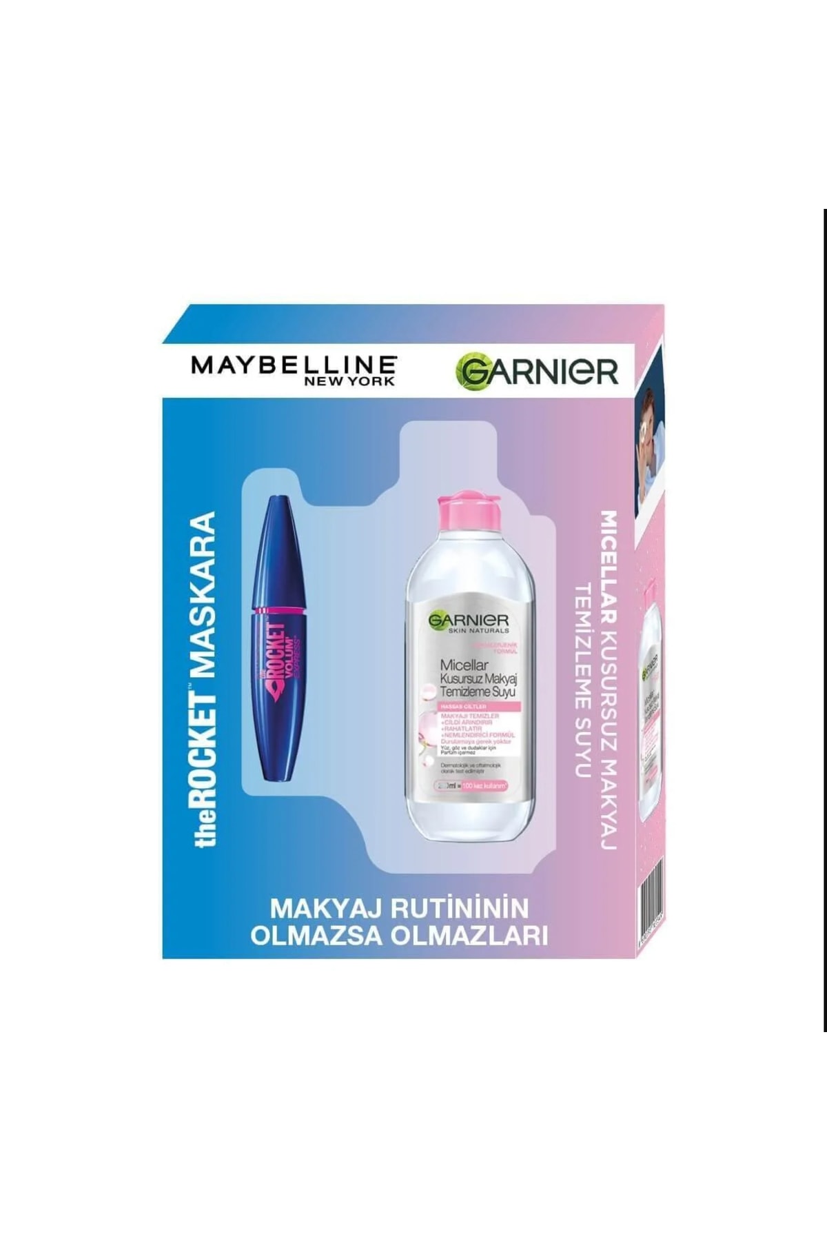 Garnier Maybelline New York Volum' Express Rocket Extra Black Mascara + Pink Micellar 200 Ml Set