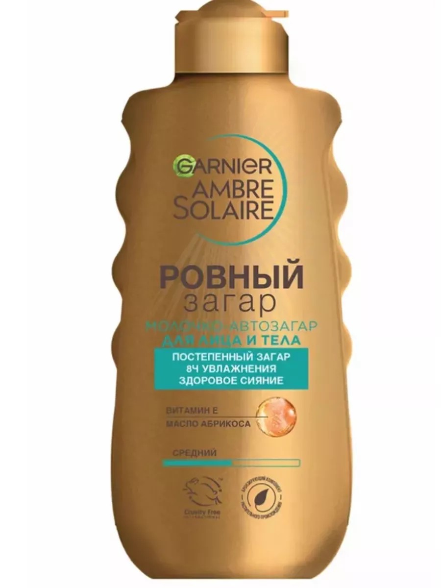 Получи естественный загар на 1 неделю всего за 1 час! Гамма Garnier Ambre Solaire Ровный Загар предлагает экспресс-продукты для автозагара, обогащенного бронзирующий компонентом 100% натурального происхождения и питательного масла для естественного сияющего загара. Молочко-автозагар позволяет добиться красивого ровного загара, одновременно увлажняя и разглаживая кожу. Обогащённое питательным маслом абрикоса, молочко-автозагар помогает получить естественный оттенок загара без разводов и сохранить его до 1 недели. Быстро впитывается. Имеет свежий аромат.
