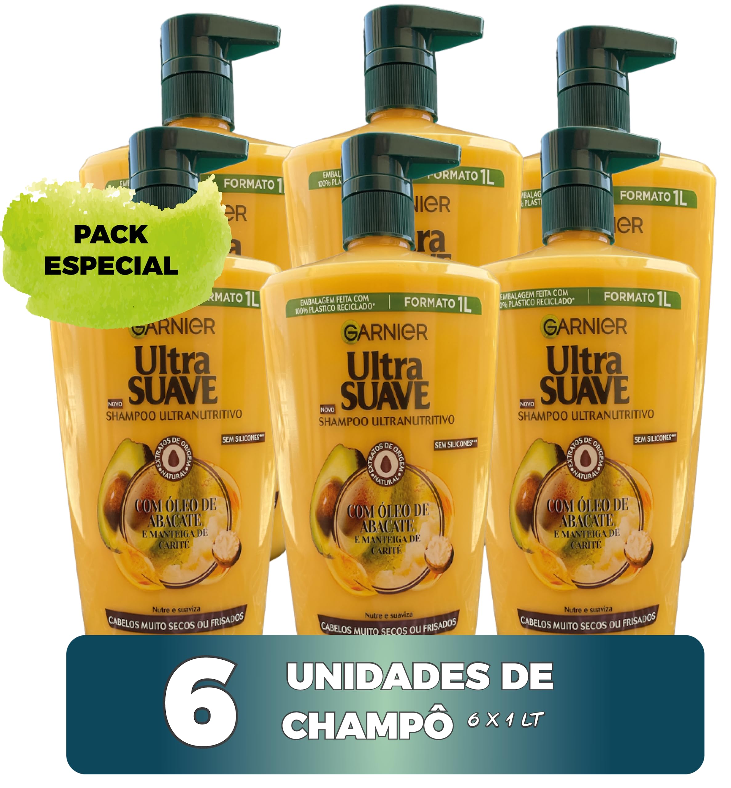 Garnier Pack with 6X1L Ultra Doux Champ Abacate Oil and Shea Butter - Intense Nutrition for Dry and Frizzy Hair - 1 Liter
