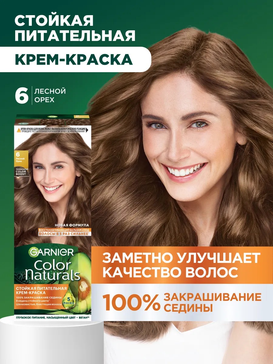 Стойкая питательная крем-краска для волос Color Naturals, оттенок 6, Лесной орех.