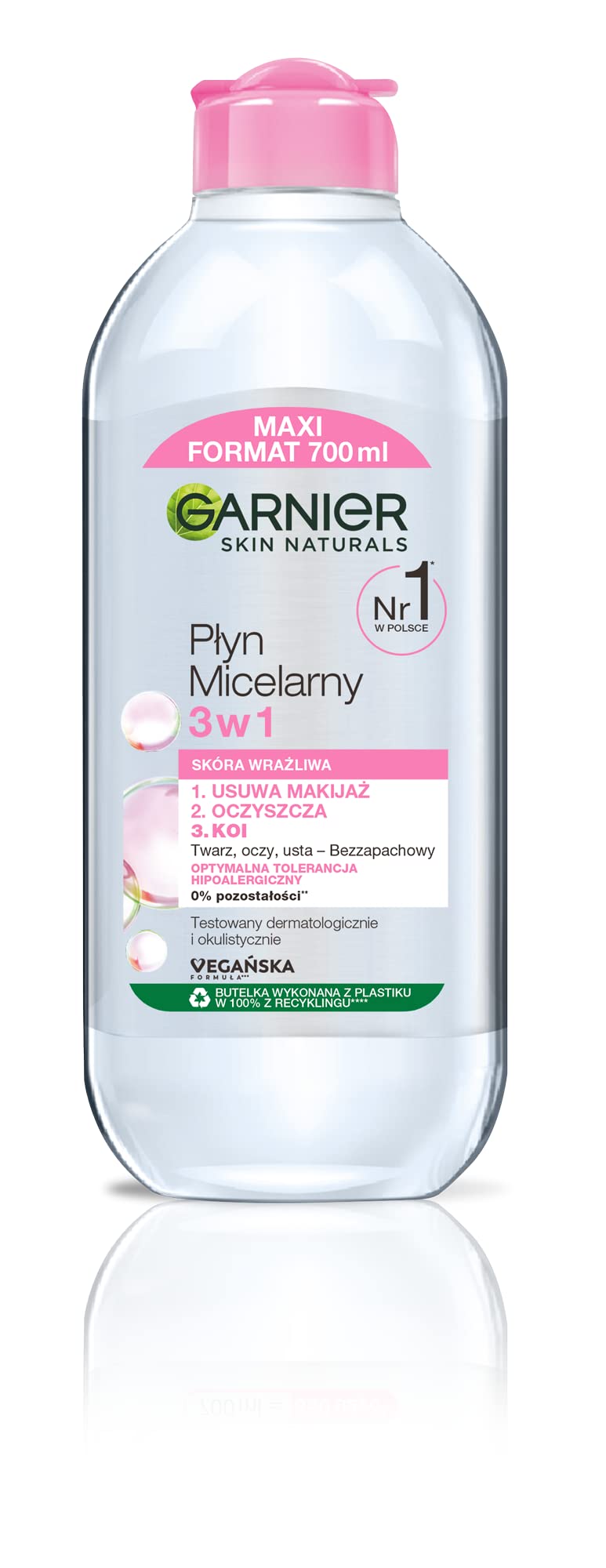 Si vous êtes à la recherche d'un moyen extrêmement efficace, rapide et facile de nettoyer et démaquiller, essayez le liquide micellaire 3 en 1 pour peaux sensibles Garnier D'un geste, il nettoie le maquillage et élimine les impuretés et apaise même les peaux sensibles. Comment ça marche ? Sa formule est enrichie en : Miceles - composants de nettoyage invisibles qui attirent le maquillage et les impuretés comme un aimant pour nettoyer efficacement sans frotter. Glycérine végétale – cela aide à hydrater et à apaiser la peau. Grâce à sa tolérance optimale, la formule hypoallergénique convient à tous les types de peau, même les peaux sensibles. Sans parfum