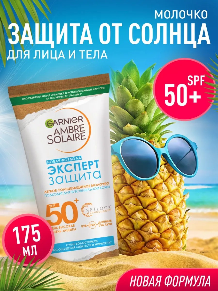 Солнцезащитное молочко "ЭКСПЕРТ защита" SPF 50+ для чувствительной кожи от Garnier Ambre Solaire