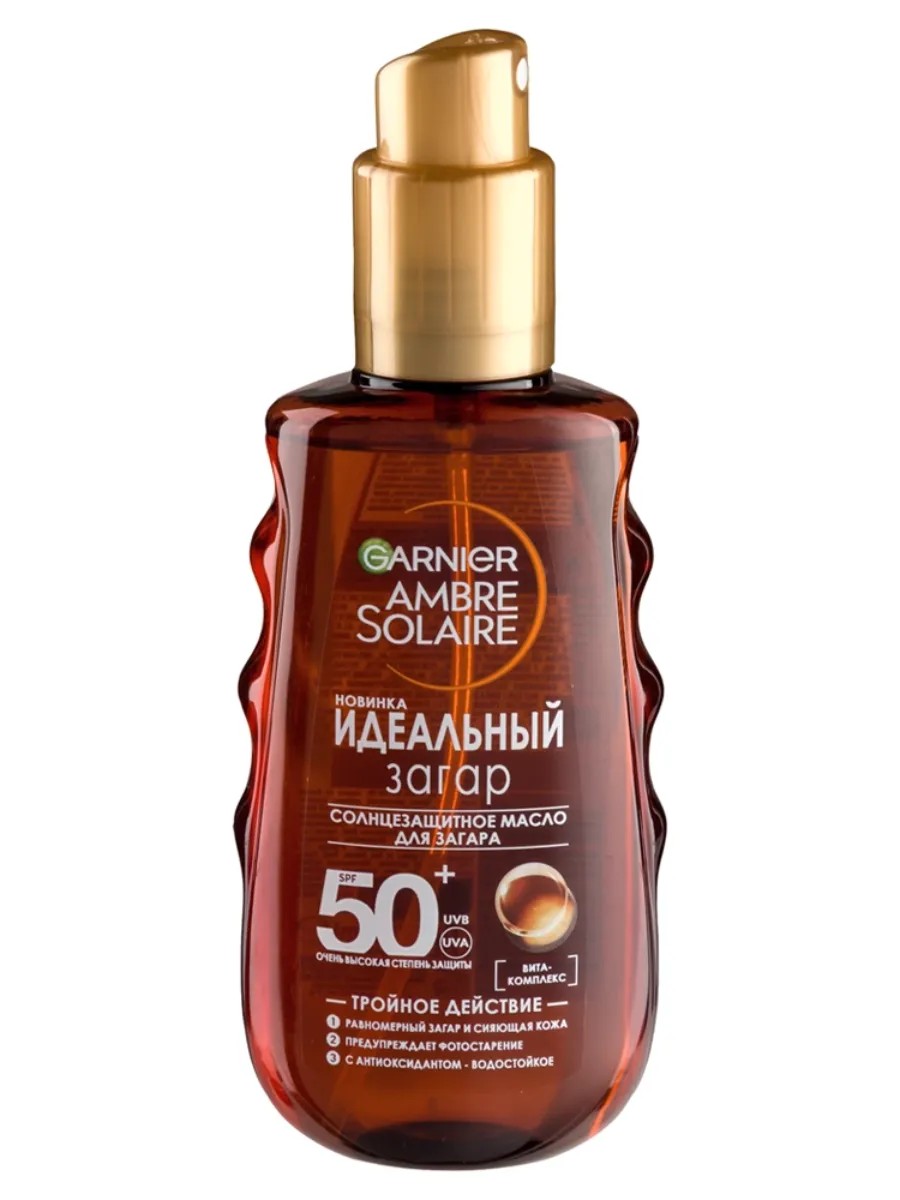 Garnier, Масло солнцезащитное идеальный загар spf 50+, 150 мл. Масло помогает активировать естественную выработку меланина, что обеспечивает равномерный и устойчивый загар. Благодаря тщательно подобранному составу, продукт не только защищает от ультрафиолетового излучения, но и делает ваше пребывание на солнце максимально безопасным. Средство с SPF 50 предлагает оптимальную защиту от солнечных ударов, предотвращая появление ожогов и пигментных пятен. Состав: isopropyl palmitate, ethylhexyl palmitate, alcohol denat., diisopropyl sebacate, bis-ethylhexyloxyphenol methoxyphenyl triazine, ethylhexyl triazone, butyl methoxydibenzoylmethane, c12-15 alkyl benzoate, dicaprylyl carbonate, ethylenediamine / stearyl dimer dilinoleate copolymer, ci 40800 / beta-carotene, tocopherol / cocos nucifera oil / coconut oil, hydroxycitronellal, helianthus annuus seed oil / sunflower seed oil, pentaerythritol tetra-di-t-butyl hydroxyhydrocinnamate, benzyl alcohol, drometrizole trisiloxane, gardenia tahitensis flower, butyrospermum parkii butter / shea butter, citric acid, glycine soja oil / soybean oil, parfum / fragrance. (f. ilz70037585/1).