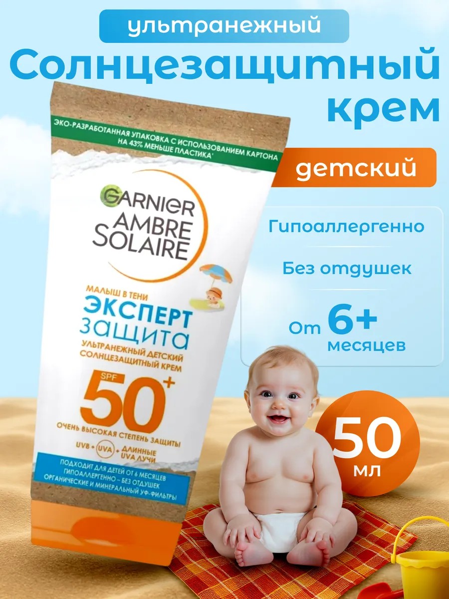 Garnier Ambre Solaire Малыш в тени солнцезащитный крем SPF50+ для детей с 6 месяцев.